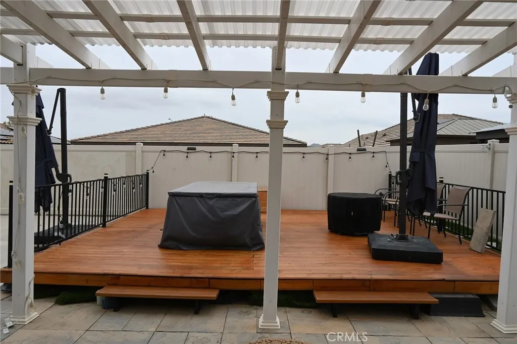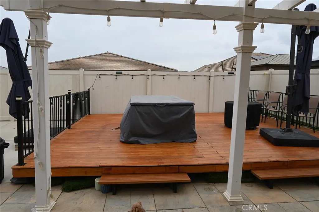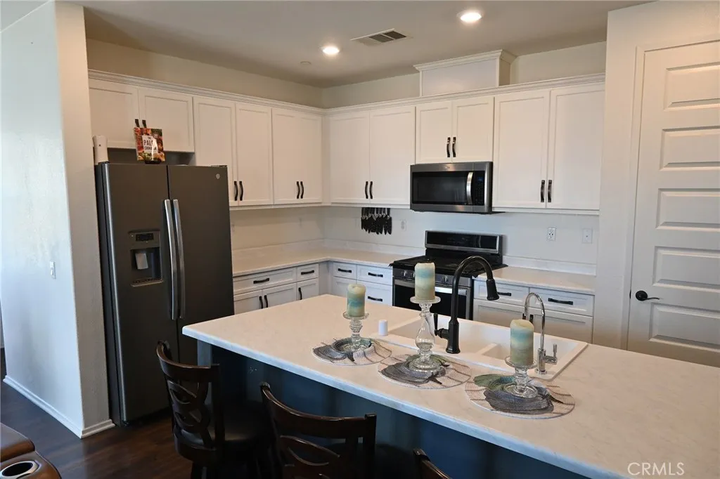 Wonderful, beautifully maintained and upgraded single story home built in 2019 located in a beautiful Winchester neighborhood. This 3-bedroom, 2-bathroom residence offers an open and functional floor plan that in which the great room flows into a modern kitchen featuring white cabinetry, high-definition laminate countertops, stainless steel appliances, and a large center island—ideal for everyday living and entertaining. The private primary suite includes a walk-in closet and an on-suite bath. Additional bedrooms provide flexibility for guests. Enjoy a 7.1 home theater system with Klipsch speakers. Energy efficient features include a 21kW solar system that produces approximately 32kw and central HVAC. Additionally, there is a home backup generator by Generac that will supply power when there is an area power outage. The property also offers an attached two car garage with an EV outlet and low maintenance landscaping with artificial turf front and back yards. Quad sliding doors open to the backyard, creating seamless indoor-outdoor living with a built-in deck and fire pit, perfect for outdoor entertaining. Solar panels with an assumable lease. This marvelous home is move in ready and a fantastic opportunity. Located near schools, parks, shopping, commuter routes, and a short drive to Temecula wine country or Diamond Valley Lake.