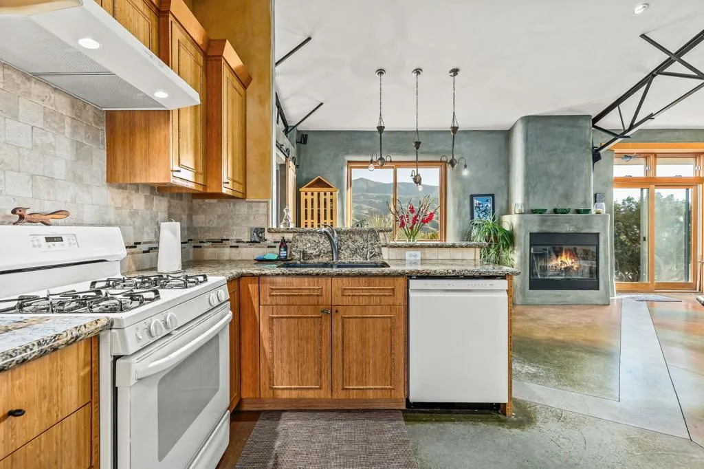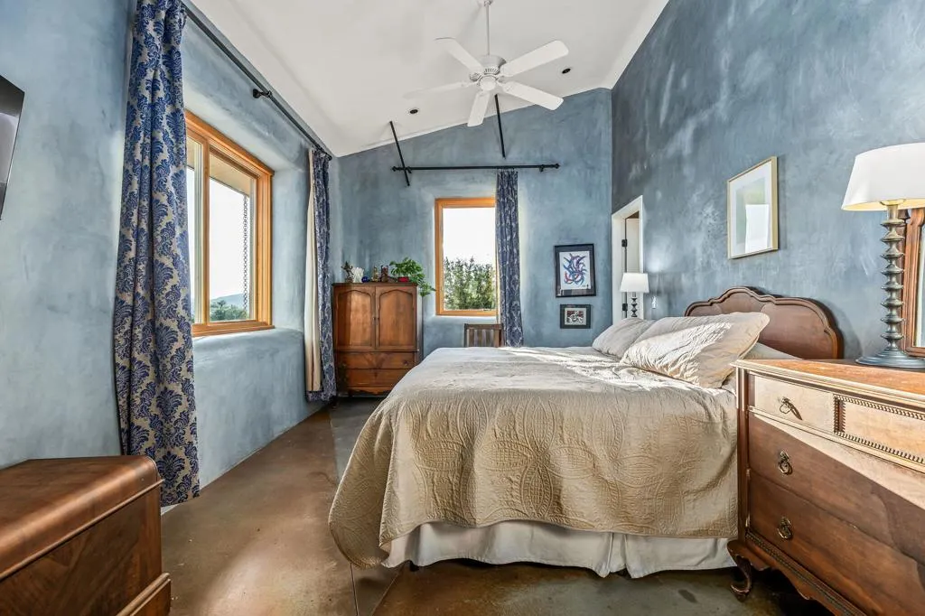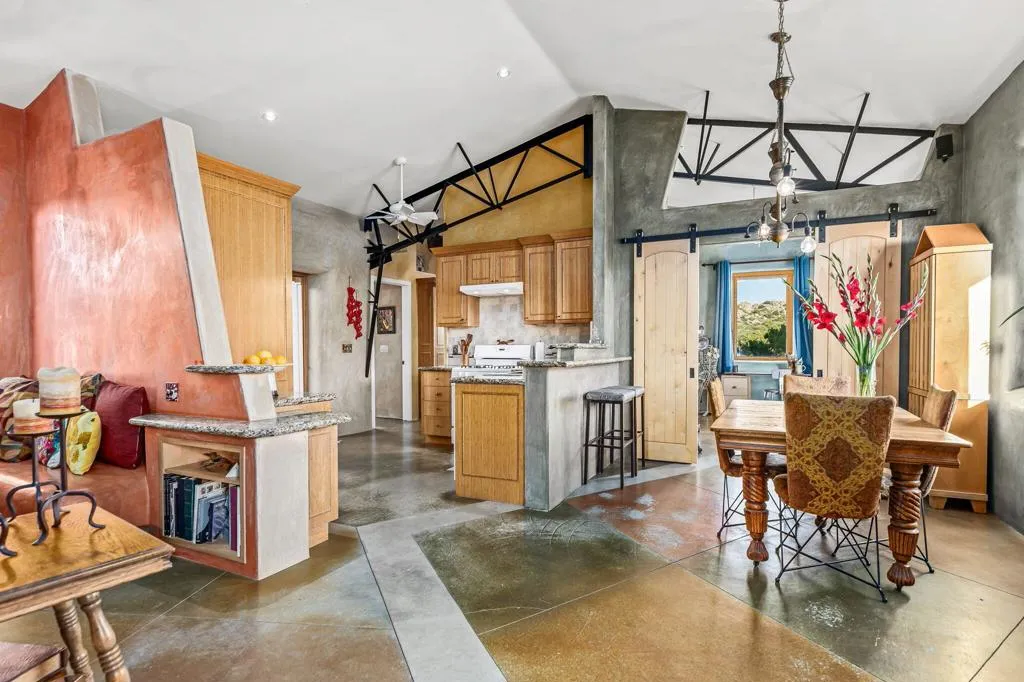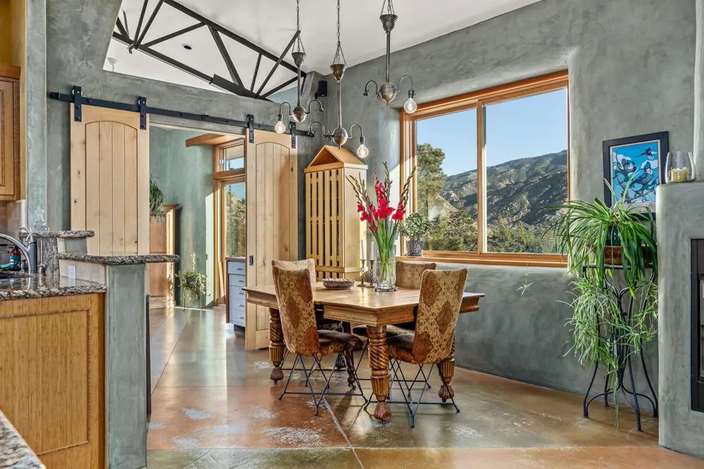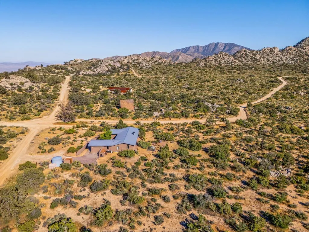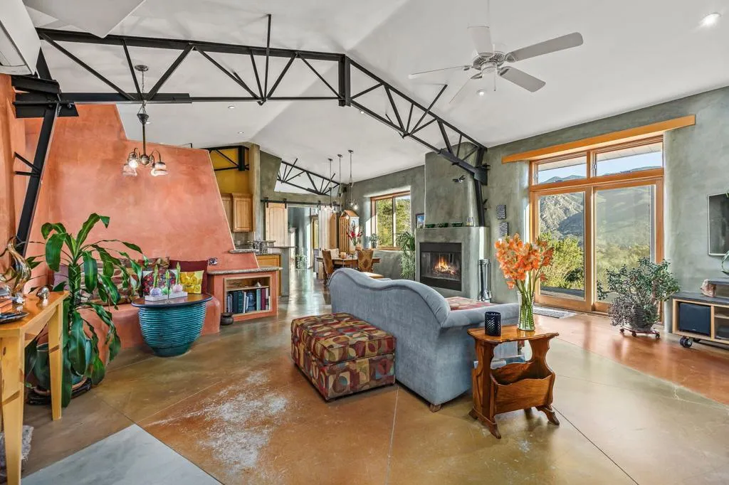 This custom home was designed and built, not assembled-crafted for exceptional privacy, longevity, and intentional living. Offering 3 bedrooms, 2 bathrooms, and a flexible bonus room, this thoughtfully designed retreat welcomes you with an open floor plan featuring exposed steel trusses and panoramic mountain views, filling the space with natural light. Backing directly to the National Forest, the home provides unobstructed views, exceptional privacy, and star-filled night skies permanently protected from any development. Enjoy both breathtaking sunrises and sunsets, along with peaceful moonrises and moonsets, all from the comfort of your own property. Experience a climate 15-20 degrees cooler than the desert, while still being approximately 20 minutes from El Paseo and the desert floor.Engineered for durability and efficiency, the home features exposed open web steel truss construction, approximately 2-foot-thick insulated walls, deep footings, and a standing seam metal roof, along with burnished limestone plaster walls and clear pine window and door casements that bring warmth and character. Designed for sustainable mountain living, the home incorporates passive solar design-capturing winter sun for natural warmth while staying cool in summer-paired with radiant heated concrete floors and impressive energy efficiency. Thoughtful enhancements include a whole house water softener system, reverse osmosis drinking water system, and a tankless instant hot water system.Outdoor and lifestyle features include paver stone multi-tiered patios and a welcoming front courtyard with a paved patio, creating ideal spaces for relaxing or entertaining while taking in the surrounding beauty. The property also offers a greenhouse for growing your own food, two garden sheds, a 5,000-gallon water tank, five water-collecting cisterns, and an HOA-approved fenced area for dogs, providing both sustainability and peace of mind. Step outside to scenic hiking and biking trails just beyond your doorstep, along with a peaceful labyrinth for reflection. Flexible spaces like the garage are ideal for a studio or workshop, making this home a true retreat for nature lovers, thinkers, creators, and those seeking a quieter way of life.This is a rare opportunity to own a home that is not only beautifully designed but intentionally built to last–schedule your private tour and experience the peace, craftsmanship, and lifestyle for yourself.