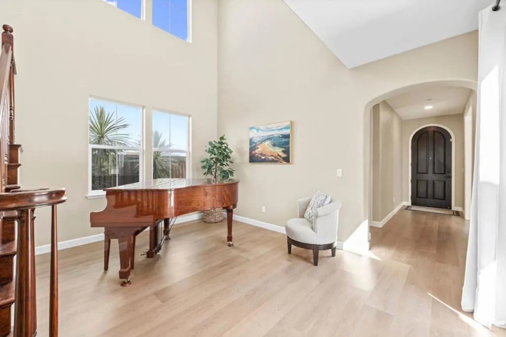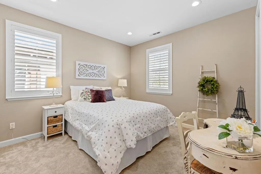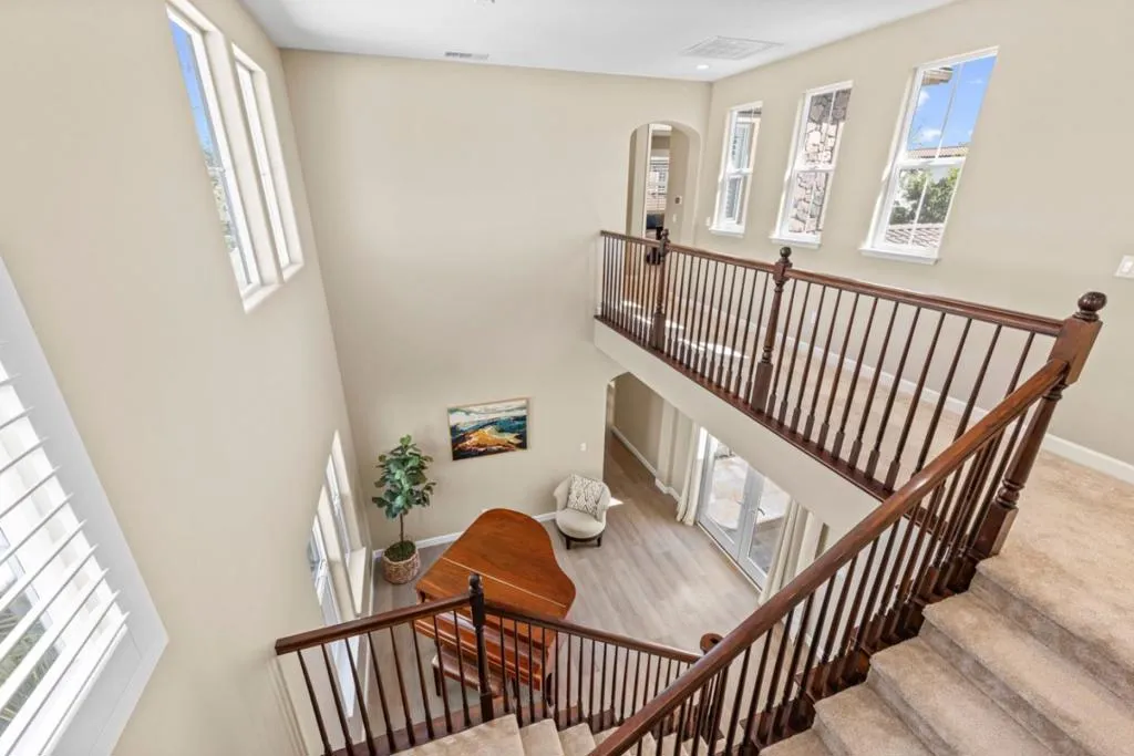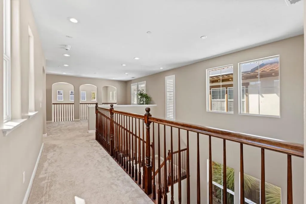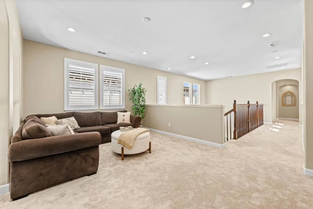 Discover the charm of this Creekside home in the golf course community of Eagle Ridge! Showcasing a striking Mediterranean-inspired exterior with a distinctive rock facade, this home is ideally located just steps from the community park and pool–perfect for family fun and proximity to many of the Eagle Ridge activities! This inviting home features rich LVP flooring on the 1st floor, Andersen French doors and plantation shutters throughout. A versatile front living room with French doors can serve as a home office or guest bedroom. The formal dining room with soaring ceilings opens to a spacious side courtyard, creating an ideal entertaining space. The gourmet kitchen offers granite slab countertops, Bosch stainless steel appliances, and a cozy breakfast nook with built-in hutch, all flowing into the family room with fireplace and entertainment niche. The well-designed floor plan includes 4 bedrooms and 3 full baths, with a convenient downstairs guest room and bath. Upstairs, a large loft with built-in entertainment center and bookcases provides flexible living space. The primary suite features a private French balcony and spa-like bath. Additional highlights include a stylish porte-cochère, leased solar, 3-car garage, and travertine hardscape, completing this pristine home.