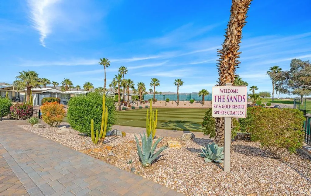 Welcome to The Sands RV & Golf Resort, a desirable 55+ gated community offering resort-style living in the heart of Desert Hot Springs. This well-maintained home features approximately 370 sq ft of thoughtfully designed living space, including 1 bedroom, 1 bathroom, a functional kitchen, dining area, and a comfortable living room filled with natural light.The layout offers an efficient use of space with a seamless flow between the kitchen, dining, and living areas, creating an inviting and open feel. The bedroom is privately situated, while the bathroom and foyer provide convenient access throughout the home. Large windows in the living area enhance the space with natural light and a sense of openness.Offered fully furnished and move-in ready, this home comes with everything included–making it a convenient and turnkey opportunity for a full-time residence, seasonal getaway, or investment.Ideally located within the community, this home is just a short distance from two of the three dog parks, making it a great option for pet owners.Residents of The Sands RV & Golf Resort enjoy a wide range of amenities including a golf course, pools and spas, fitness center, pickleball courts, clubhouse and activity halls, game rooms, picnic areas, laundry facilities, and more–creating an active and social lifestyle within the community (buyer to verify).This is a great opportunity to own an affordable home in a well-kept, amenity-rich community.