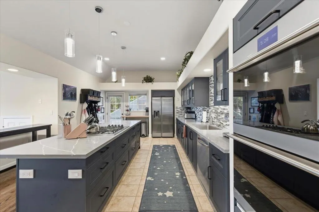 This beautiful and spacious upper Rockridge contemporary home offers 4 bedrooms and 3 1/2 bathrooms with 3,300 sq ft of living space. Three bridge views from the fantastic newer entertainment deck at the top of the property, and from many other places throughout the home. The newer kitchen is well-equipped with a gas cooktop, quartz countertops, built-in double ovens, an island, dishwasher, new refrigerator, ice maker, and exhaust fan. Flooring throughout includes carpet, hardwood, and marble. Enjoy two cozy wood-burning fireplaces and a separate family room. The primary suite features a walk-in closet and an updated bathroom with a jetted tub and larger walk in shower. Additional bathrooms include double sinks and tile finishes. A ground-floor bedroom adds convenience. Spacious Laundry room. Heating is provided by central forced air. The home has a two-car garage and energy features such as ceiling and floor insulation, tankless water heater, insulated walls, low-flow toilets, and a thermostat controller. The property is located in the Oakland Unified elementary school district.