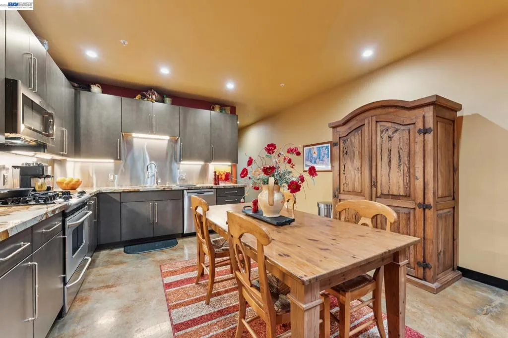 MUST SEE IN PERSON!! This is the unicorn property you’ve been waiting for! Experience modern loft-style living in this stylish 2 bed, 2 bath condo that blends industrial design with contemporary comfort. The open floor plan features soaring vaulted ceilings, exposed brick, gleaming acid-washed concrete floors, and an abundance of natural light enhanced by skylights above. The first floor offers a seamless flow between the living, dining, and kitchen areas, complete with stainless steel appliances and a clean, modern aesthetic. A bedroom and full bath on the main level provide flexibility for guests or multigenerational living. Upstairs, a private loft retreat serves perfectly as a home office, studio, or creative space, along with a second bedroom and bathroom for added privacy. Nearby are BART, Lake Merritt, Downtown Oakland, Brooklyn Basin, Chinatown, Laney College, and the Oakland Museum—offering convenient access to transit, culture, dining, and waterfront living. Open House Sat 4/25 2-4pm.