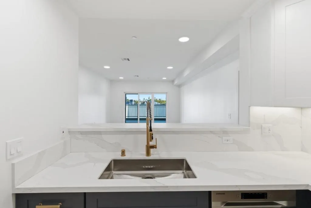 Newly completed and never occupied, this spacious condo offers modern living in a prime location just steps from dining and transit. Featuring the largest floor plan in the building at 1,425 sq ft, this 2-bedroom, 2.5-bath home includes a versatile bonus room off the kitchen, perfect for a home office or flex space. The thoughtfully designed split layout places bedrooms on opposite sides for added privacy. A bright, open family room with 9-foot ceilings flows seamlessly to an oversized private balcony through sliding glass doors. The primary suite features a walk-in closet and a beautifully finished ensuite bathroom. The home is equipped with all-new appliances, including a refrigerator, gas range, dishwasher, and in-unit washer and dryer. Enjoy year-round comfort with air conditioning and efficient heating. A convenient half bathroom near the entry and a stair-free interior enhance everyday livability. Additional highlights include assigned parking in a secure garage and exterior security cameras for added peace of mind. Ideally located near the San Carlos Caltrain Station, vibrant downtown San Carlos, and major commute routes, this home offers the perfect blend of comfort, style, and convenience.
