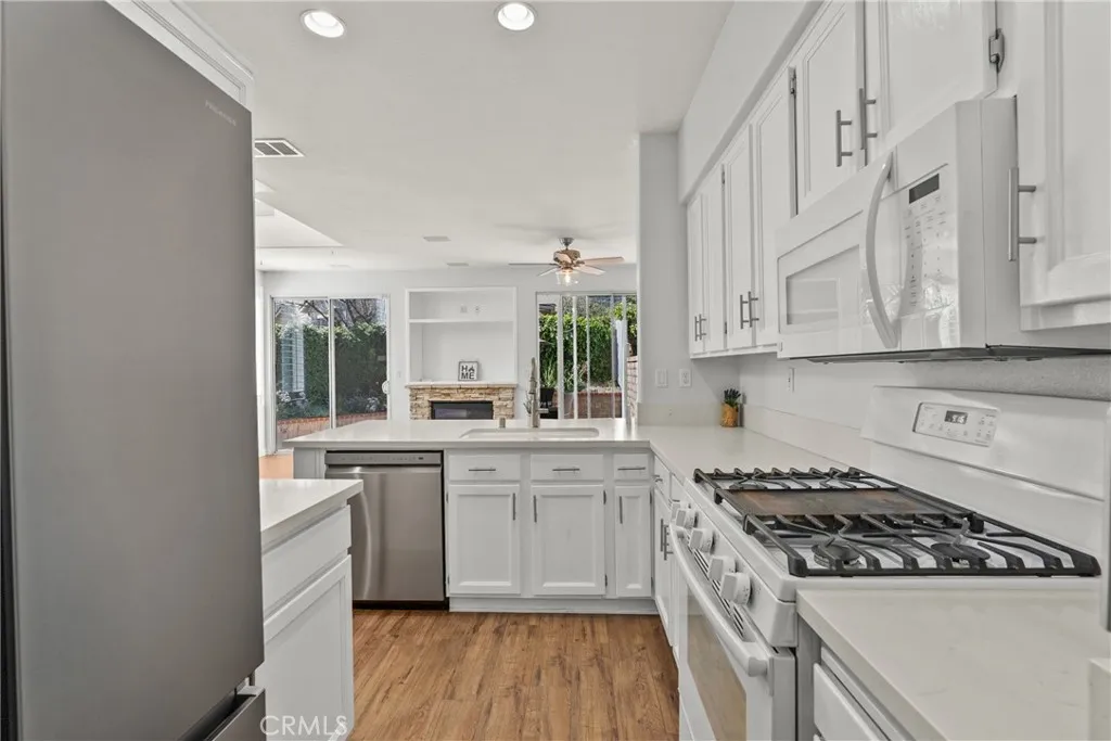 This Wonderful floor plan has a light and bright living room with stone fireplace for cozy gatherings. The kitchen over looks the quartz breakfast bar