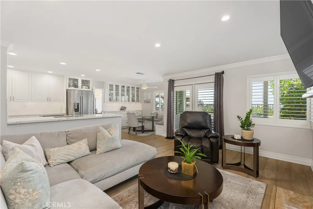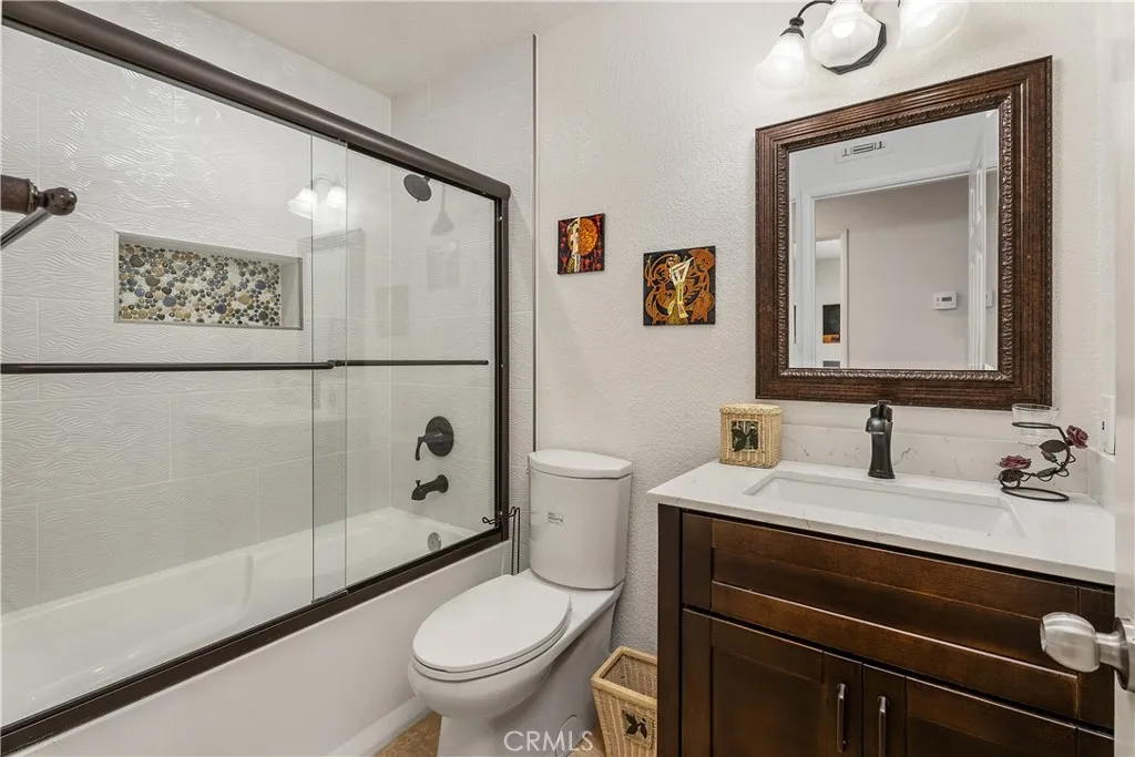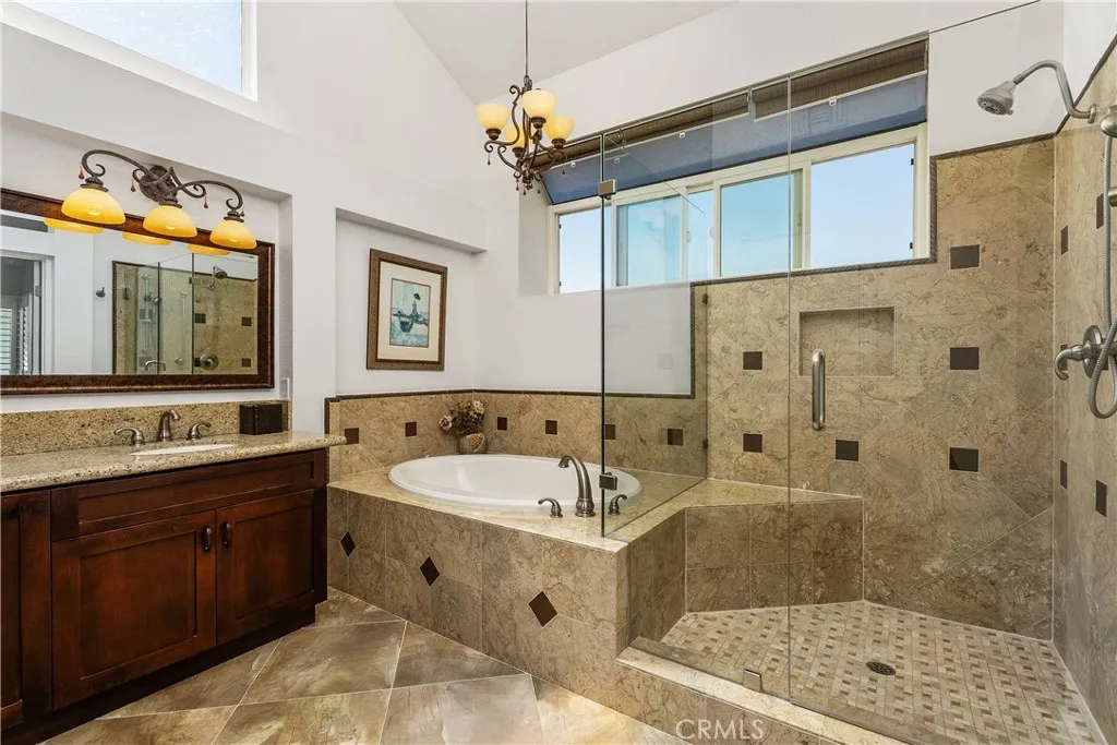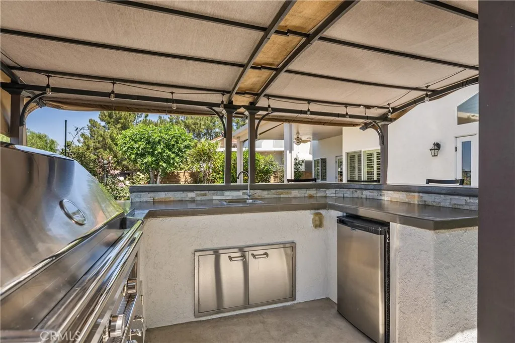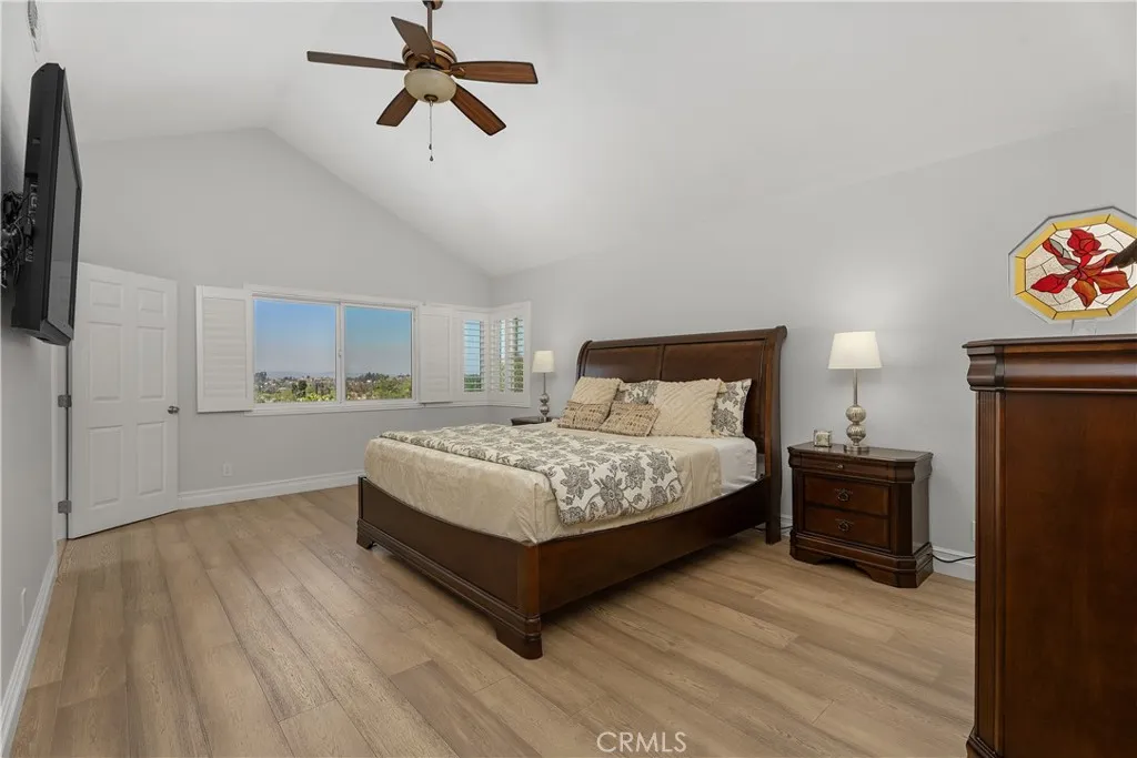 Location, Location, Location. Stunning and Absolute Gem in Prime location of Mission Viejo. Rarely available in most desirable neighborhoods of Belvedere track with paramaniac View of city, mountain and incredible sunset, view of 4th of July fireworks!!! This two-story home located in Single-Loaded Street showcases exceptional detail and a designer touch throughout offers 4 bedrooms plus office/study room on 2nd floor, and 3 full baths – ONE BEDROOM AND FULL BATH DOWNSTAIRS, downstairs bedroom currently used as a home office. Step inside to soaring cathedral ceiling that create a dramatic and airy first impression, every space has been thoughtfully curated with style and comfort in mind. Engineered Wood flooring flows seamlessly throughout, adding timeless elegance and continuity to every room, upgraded Kitchen including custom cabinets function like pantry to maximize storage, Premium stainless steel Appliances, built in Kitchen nook with storage opens to family room and remodeled Gas Fireplace with sparkling fire glass and custom Marble surround. Dual-pane windows complemented by custom built in shutters provide enhanced energy efficiency and comfort year- round. The Primary suite offers dramatic ceiling height, abundant natural light and breathtaking views feel remarkably Spacious and inviting, Primary bathroom includes a glass enclosed walk-in shower and a soothing jetted tub- perfect for unwinding at the end of the day. The custom walk-in closet feature built in organizers to keep everything beautifully in place. 2 other guest bathrooms are Fully upgraded with sleek glass enclosed shower and tub combination offer both style and functionality, freshly painted interior and exterior provide a clean, modern look and true move-in ready appeal. A complete remodeled Front and Backyard with flagstone pavers and concrete block design. Artificial turf, custom flower bed with drought- tolerance shrubs and plants and Fruit trees at front and back yard. Backyard offer entertainer’s dream include Fully built-in outdoor kitchen, inviting firepit, built in 10’ Aluminum Patio cover with recessed lighting and ceiling fan, Breathtaking view of sunset, mountains and sparkling city lights, blending indoor elegance, outdoor living. This home offers the perfect balance of sophistication and relaxation. HOA offers Oso Creek Trail and Lake Mission Viejo HOA membership offers Fishing, Boating, Swimming and Summer concerts are a few of the privileged activities.