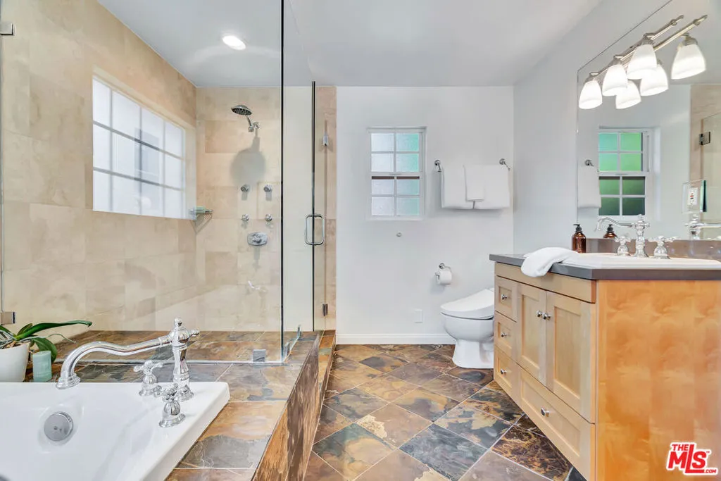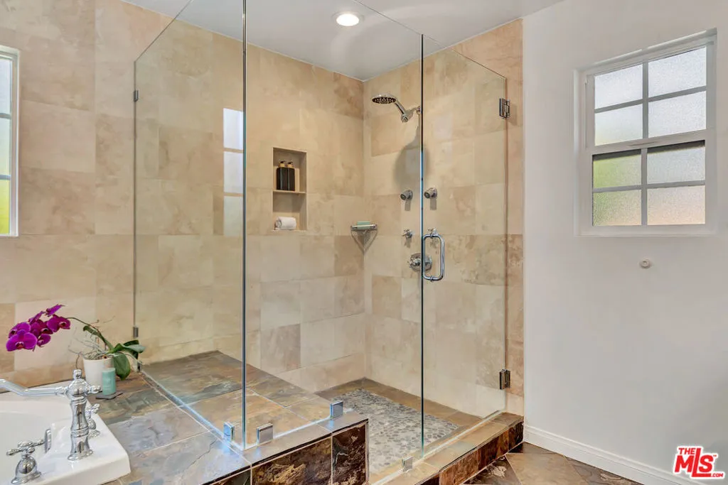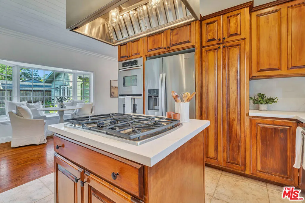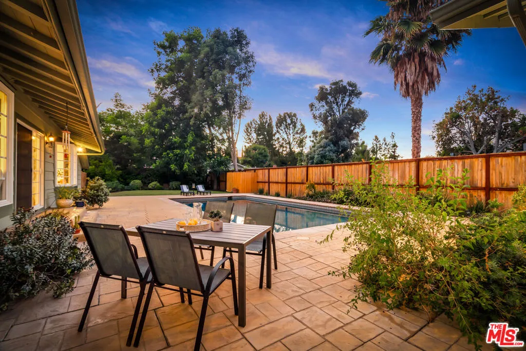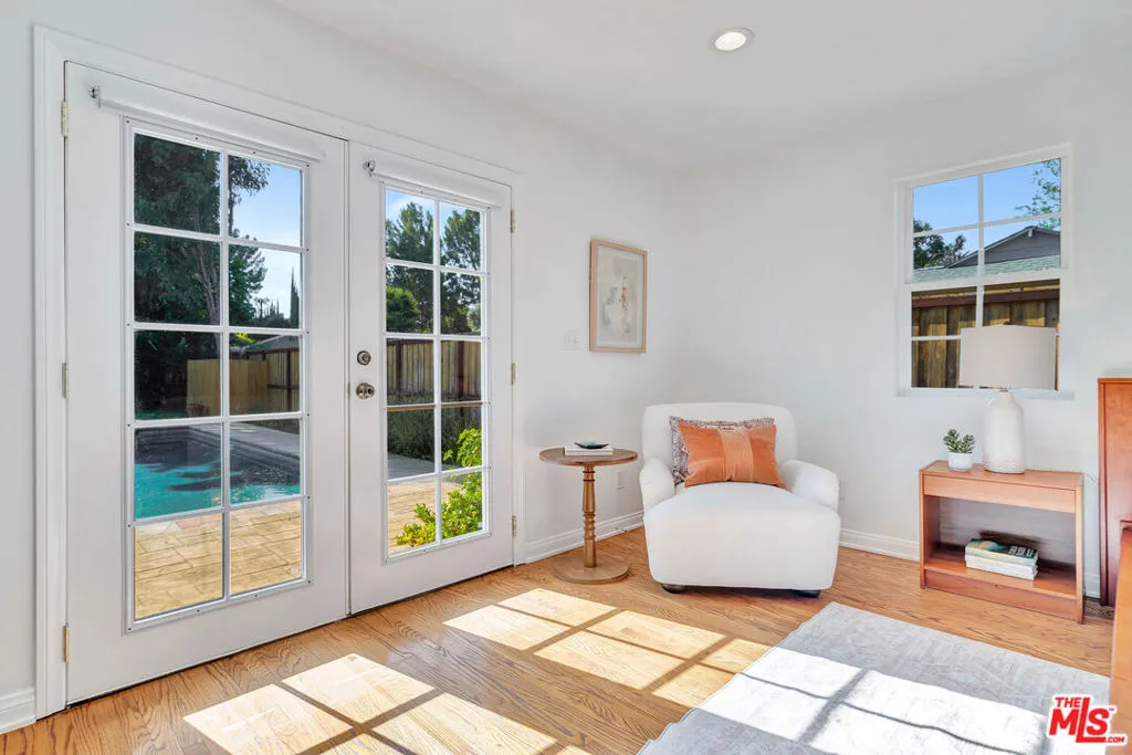 Welcome to a crown jewel of College Acres, Woodland Hills, a breathtaking ranch-style pool home in the iconic CANDY CANE LANE neighborhood! Set on a sunny, flat, more than a quarter-acre corner lot, this stunning 3BR + 3BA residence, WITH SOLAR, offers the ideal blend of charm, function, and potential. With 2,244 ft (apx) of living space, this turnkey home features an attached, pass-through two-car garage, making it a prime opportunity for a Junior ADU (Accessory Dwelling Unit) conversion. Expansive front and back yards, along with a generous side yard, are also ideal for a full ADU or home expansion. Step inside and enjoy an inviting sitting room with a cozy fireplace, a dining area framed by elegant bay windows, and an updated kitchen featuring stainless steel appliances, quartz countertops, and an open-concept island that seamlessly connects to the light-filled living room. The spacious primary suite features a massive walk-in closet and a spa-like en-suite bathroom, complete with a Jacuzzi-style tub, a separate shower with frameless glass, and luxurious travertine and slate finishes. Additional upgrades and highlights include a saltwater pool, RV parking, copper plumbing, hardwood floors, smooth ceilings, and recessed lighting. The seller-owned solar panels will reduce electricity costs along with the Milgard windows and Basswood shutters. Low-water gardens allow for beauty without a high water bill. Fantastic photos, aerial video, and immersive 3D tour are available on the property website.