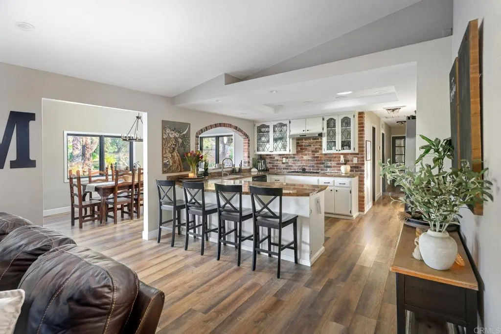 Tucked beneath a majestic, ancient oak and framed by sweeping views of Palomar Mountain, there exists a place where everyday life feels just a little more magical… Welcome to 30349 & 30351 Cool Valley Lane, a rare and enchanting 3.24-acre estate where possibility, beauty, and serenity intertwine. As you arrive, the land opens up like a private sanctuary. Sunlight dances through the branches of the grand oak, and a sense of calm settles in. The main residence unfolds with warmth and elegance—3,492 square feet of thoughtfully designed living space where gatherings come naturally and memories are made effortlessly. The expansive open kitchen flows seamlessly into the family room, anchored by a cozy fireplace, creating the perfect setting for connection and celebration. Pella windows invite the outdoors in, filling every corner with natural light and capturing the surrounding landscape like living art. With four spacious bedrooms, three bathrooms, a dedicated office, and a walk-in pantry, the home balances functionality with comfort. Luxury vinyl flooring carries you throughout, while outside, your own private oasis awaits—sparkling pool, soothing jacuzzi, and endless space to entertain under the stars. This is truly an entertainer’s paradise. Just beyond, like a hidden chapter in this story, sits the guest home at 30351 Cool Valley Lane, a beautifully appointed 1,400 sq ft retreat with three bedrooms, two bathrooms, a two-car garage, and its own fenced yard. Currently generating $3,200 per month, it offers an incredible opportunity for income, extended family, or a private escape for guests. The grounds themselves invite a slower, richer way of living—complete with a chicken coop, animal enclosure, and room to roam. Whether you envision a multi-generational family compound, an investment opportunity, or your own peaceful haven, this property offers a rare blend of versatility and charm. Here, mornings begin with golden light over the hills, afternoons are spent poolside in total privacy, and evenings end beneath a sky full of stars. This is more than a property… it’s a lifestyle, a retreat, and a story waiting to be lived.