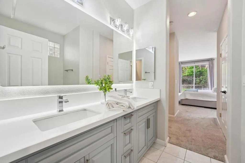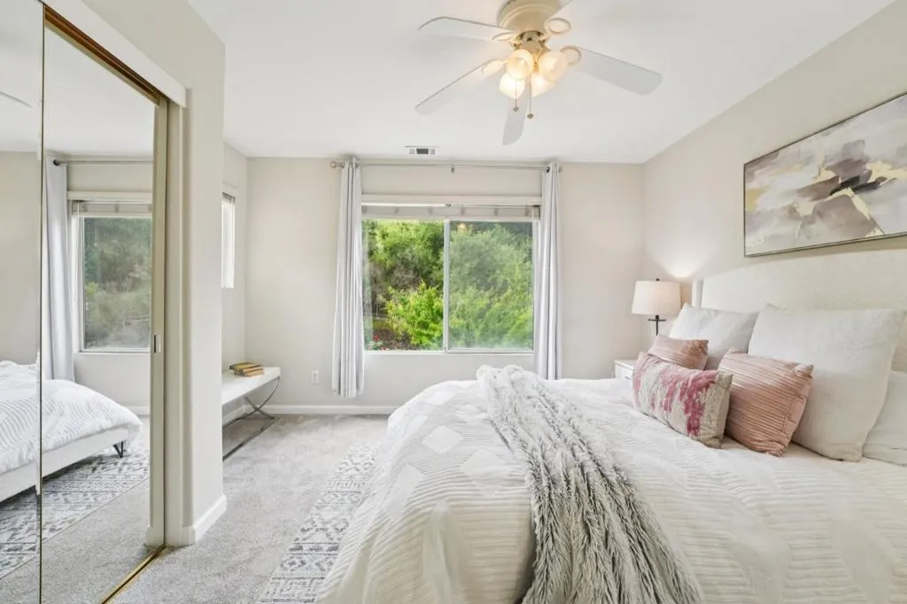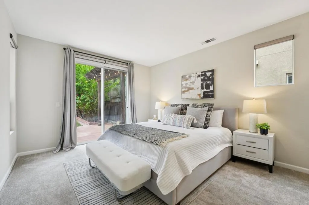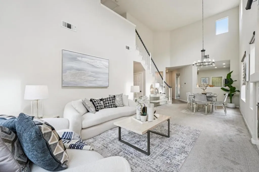 Welcome to this lovely home in the highly sought-after gated Silver Creek Country Club. The beautifully updated 3-bedroom, 2.5-bath residence offers comfort, style, and modern convenience throughout, with soaring high ceilings bringing in ample natural light all day long. The remodeled kitchen features quartz countertops, stainless steel appliances, and newer smart upgrades. Custom Levolor smart window coverings, fresh interior paint, and newer carpet enhance the home’s bright and contemporary feel. The conveniently located main-level primary suite offers a walk-in closet, dual sinks, a soaking tub, and a separate shower, creating a private retreat. An interior laundry with a washer and dryer adds everyday ease. Step outside to a spacious and serene backyard with no rear neighbors, offering peaceful hill views. Enjoy stamped concrete, a trellis, grass area, tasteful landscaping, fruit trees and a bonus storage shed, perfect for relaxing or entertaining. HOA amenities include gate security, front yard landscaping and guest parking, adding both convenience and security. Don’t miss this exceptional opportunity to own a beautiful home in a premier country club setting.