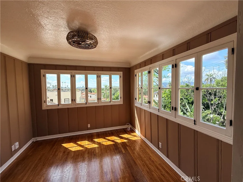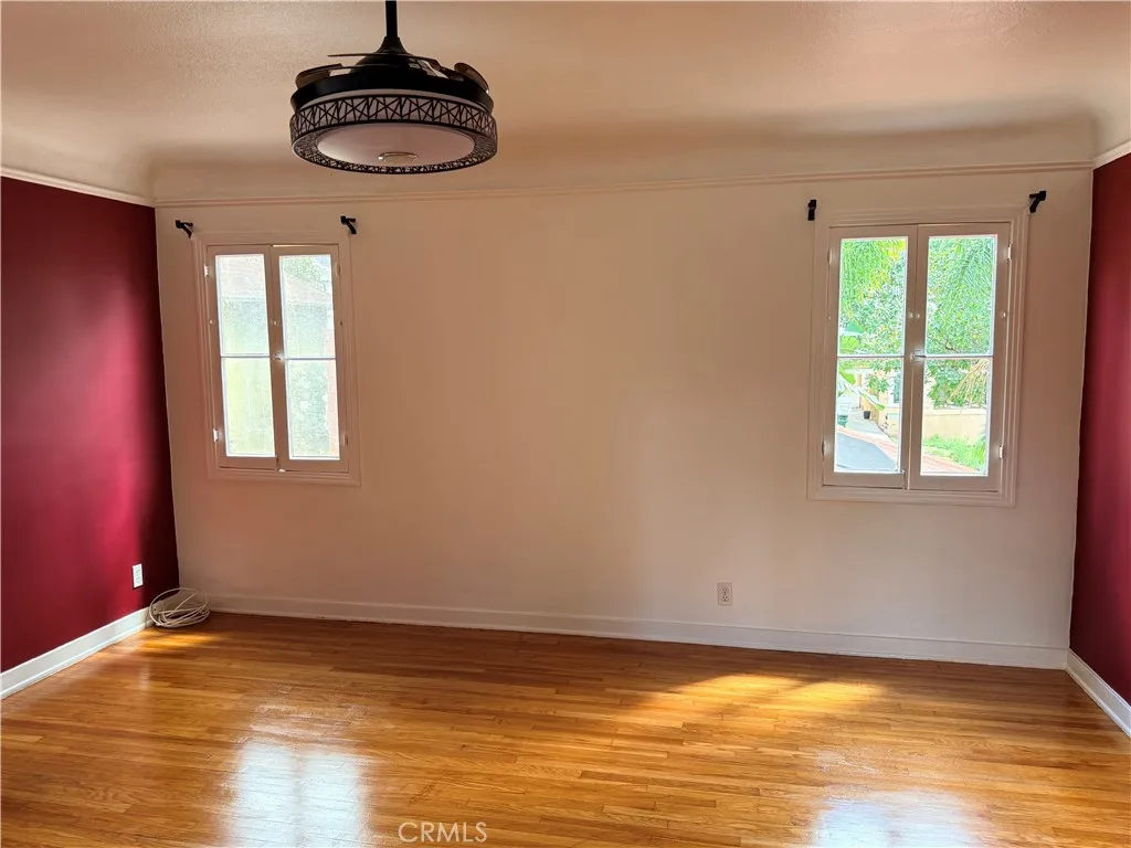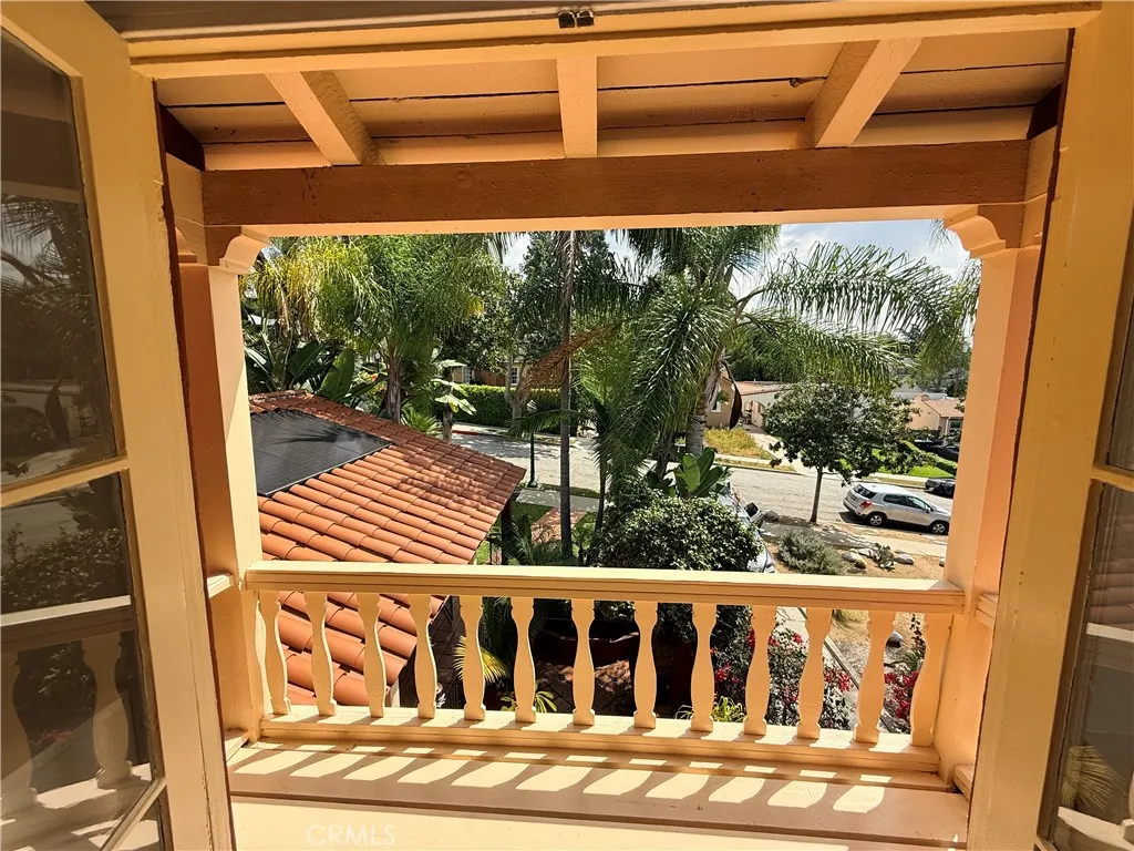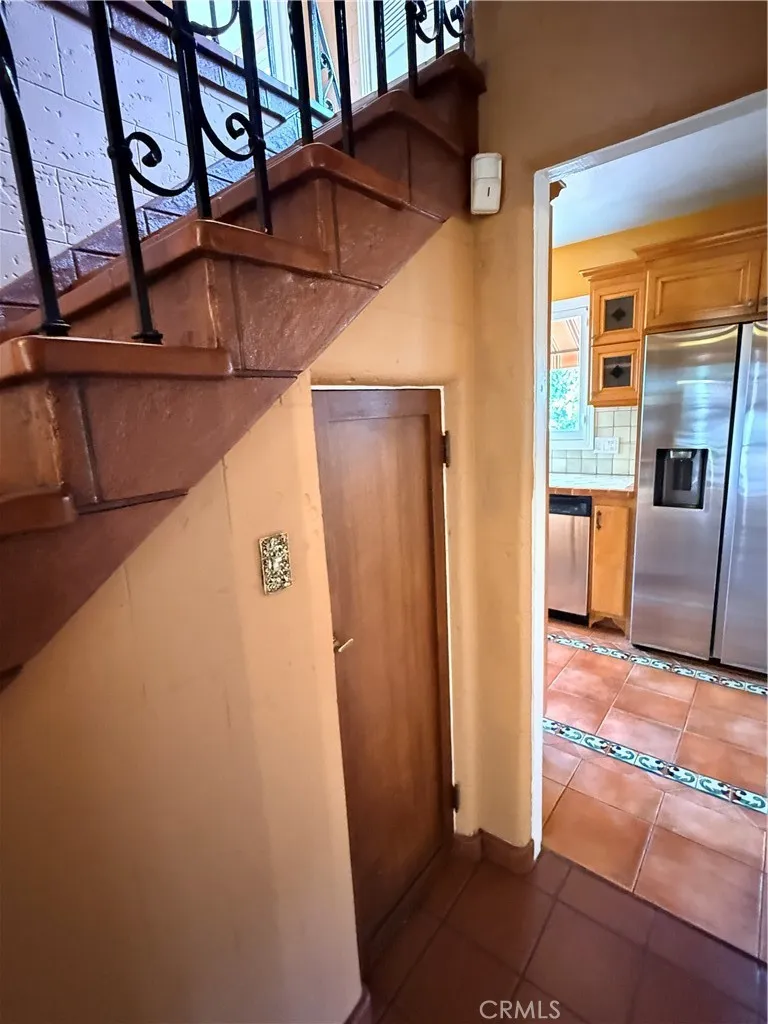 The upper level offers three light-filled bedrooms with sweeping views of the Glendale hills and the DTLA skyline. A secondary Spanish-style renovated bathroom and a convenient stacked washer and dryer in a laundry closet ensure modern functionality on for the second floor living area.