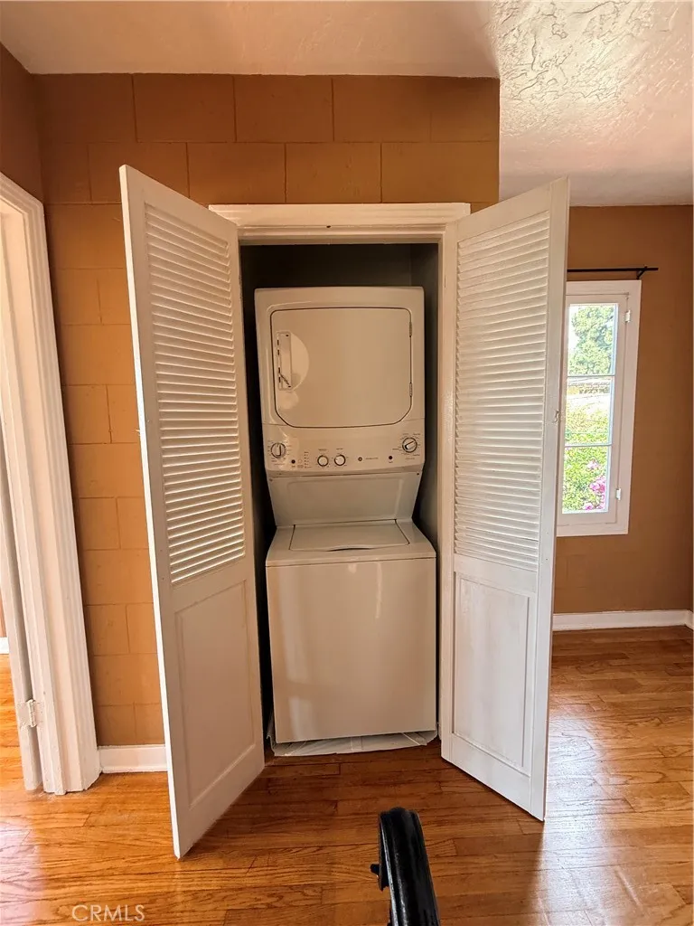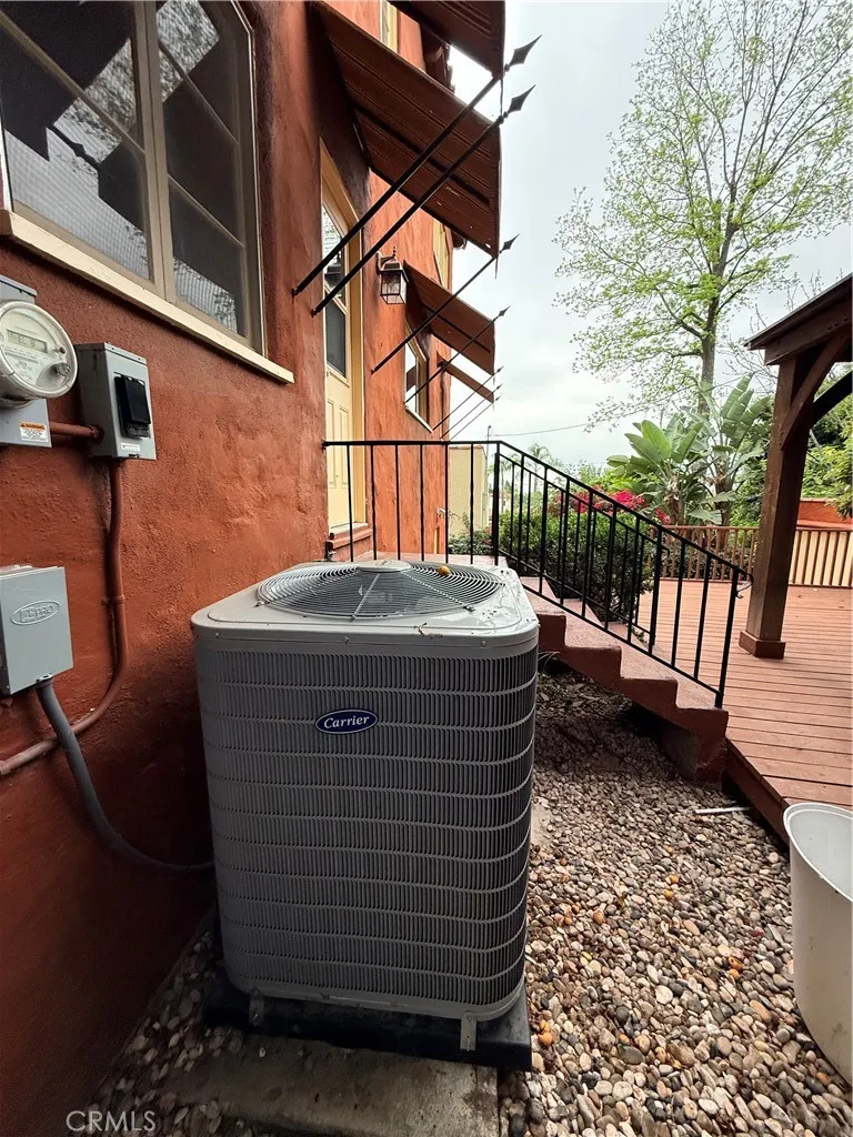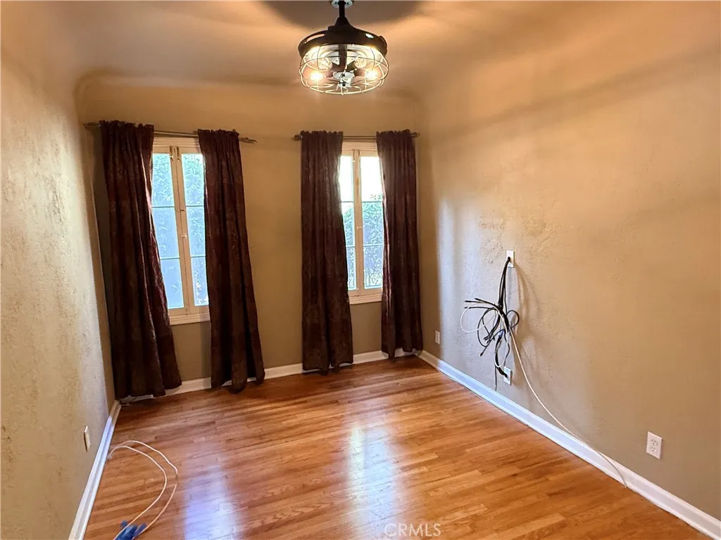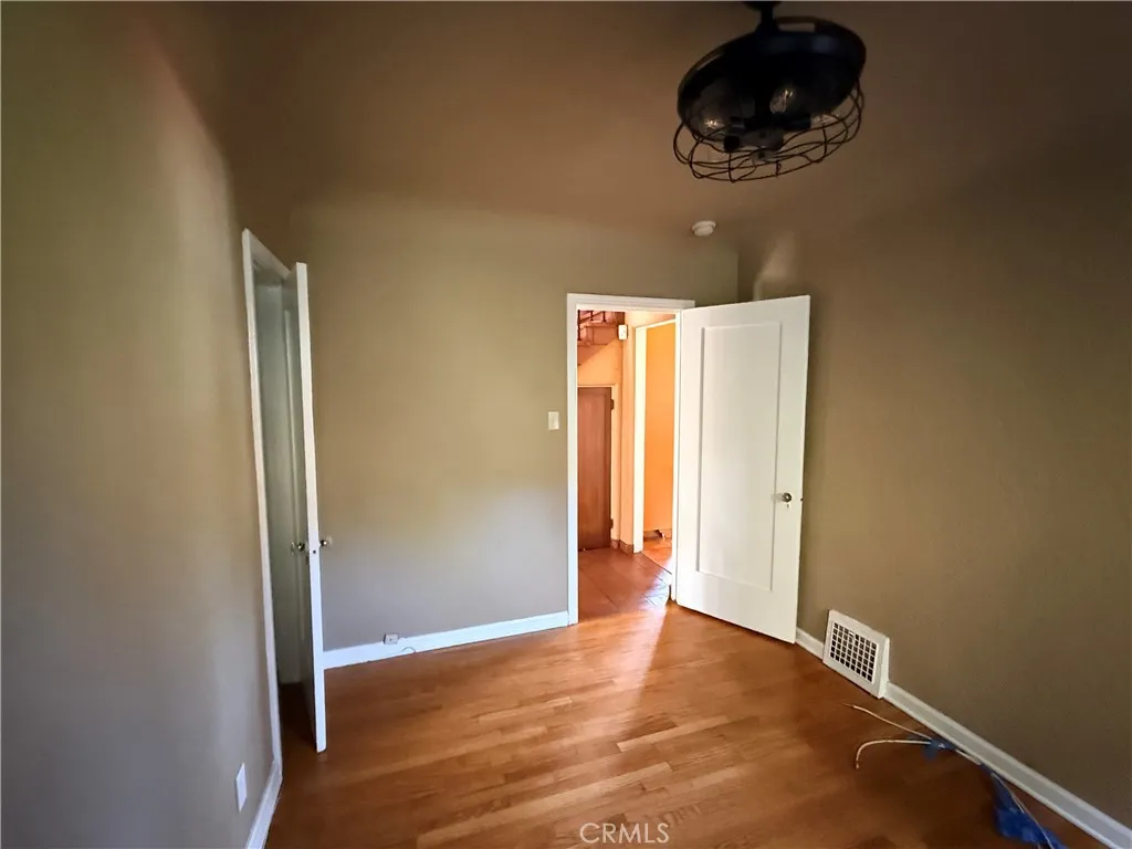 The upper level offers three light-filled bedrooms with sweeping views of the Glendale hills and the DTLA skyline. A secondary Spanish-style renovated bathroom and a convenient stacked washer and dryer in a laundry closet ensure modern functionality on for the second floor living area.