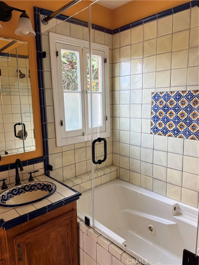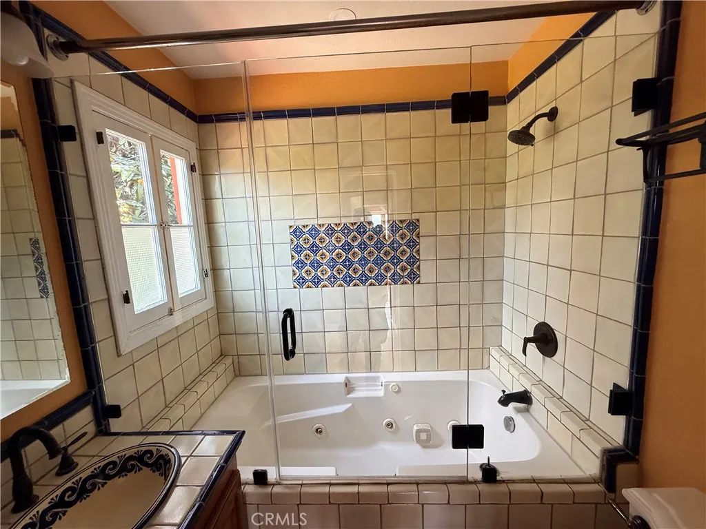 • One downstairs bathroom: Tastefully redone in peaceful tones, colorful tiles and recessed lighting.
