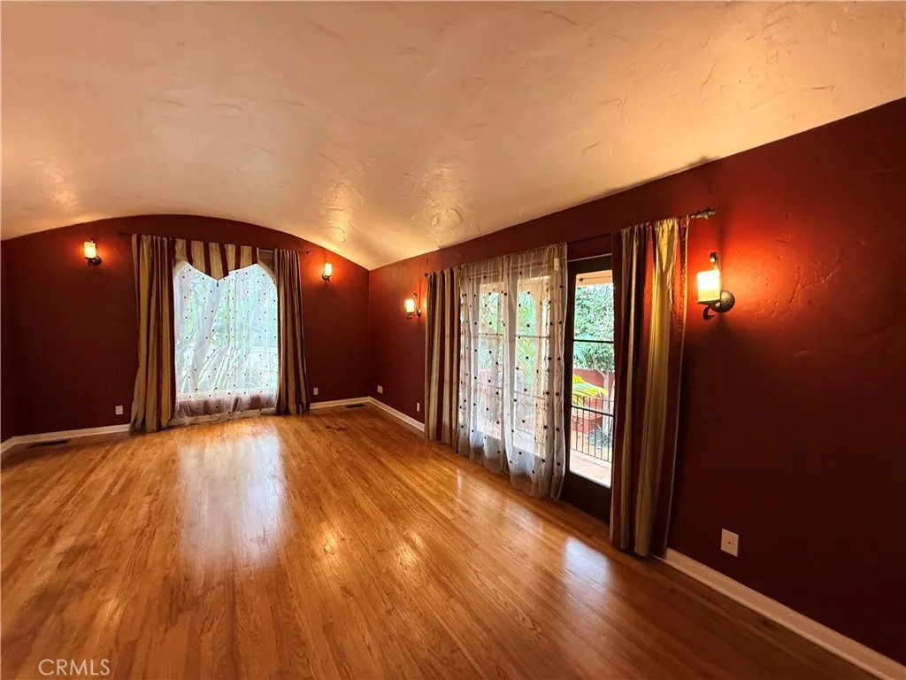 • Artful Living Spaces: A grand, step down formal living room boasts high coved ceilings, warm hardwoods, a magnificent adobe fireplace and French doors to the courtyard