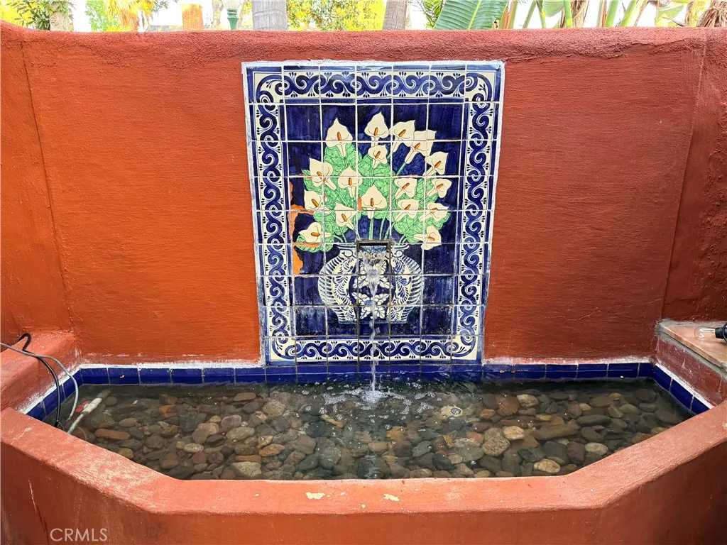 • Indoor-Outdoor Flow: French doors lead from the dining room to a private two-level courtyard featuring a wall mosaic tile waterfall and lush bougainvillea in the front. The backdoor leads to the ultimate entertaining experience. An extra-large two-tiered wooden deck, sheltered by a grand gazebo fabulous for relaxation, parties and more!
