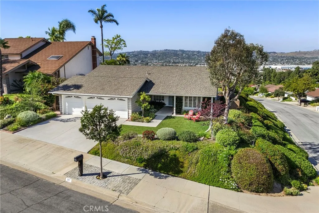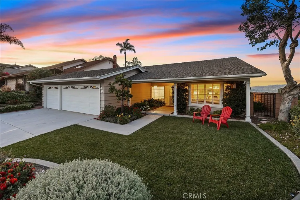 A timeless and charming SINGLE STORY residence awaits with STUNNING PANORAMIC VIEWS sitting on a corner lot in the highly desirable and pride of ownership Country Hills East community. Welcome home to 361 E. Country Hills Drive proudly presented to the market for the first time in 47 years. Loved and maintained to a high degree this ideal home features a manicured front landscape and a charming ranch style elevation with wood siding, French pane windows and a welcoming covered front entry. Stepping inside your eye will immediately notice the amazing views to the north. A formal living room features vaulted ceilings and flows seamlessly into the formal dining room. The family room is the core of the home with vaulted ceilings, gas fireplace and a quality Andersen sliding door leading to the backyard, just adjacent the family room the eat in kitchen is light and bright with granite counters and an electric cooktop. You’ll never bore while washing dishes with a perfect vantage point to take in the view. Down the hallway three comfortably sized secondary bedrooms are found (two with updated laminate flooring), the main hall bathroom is fresh and clean with tile flooring and a tile bathtub surround. Sitting at the rear of the home the primary suite is a true retreat with a comfortable sitting area and a sliding door and corner windows to take in the amazing city light and mountain views. Inside laundry and direct access to the 3-car garage completes this ideal floorplan. Soak up the sun and the best of So Cal outside in this remarkably large backyard, to have a lawn and yard of this size and a stunning panoramic view is a rare combination. Enjoy easy access to shopping, schools and mere moments to Laguna Lake.
