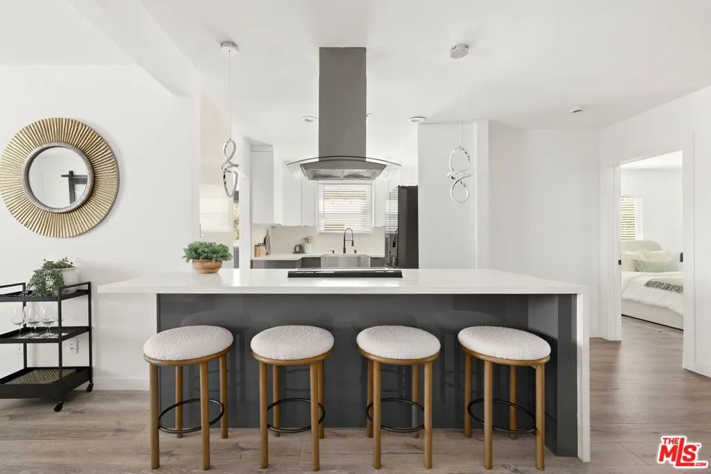 Perfectly positioned within one of Encino’s most tranquil and sought-after enclaves, this newly remodeled residence showcases a thoughtfully designed floor plan and a sophisticated blend of modern luxury and everyday comfort. Set on a quiet, cul-de-sac street, the light-filled home offers 4 bedrooms and 3 bathrooms appointed with elevated finishes throughout. A sun-drenched formal living room welcomes you inside and flows seamlessly into a chef’s kitchen featuring sleek custom cabinetry, granite countertops, smart stainless-steel appliances, and a striking waterfall-edge peninsula ideal for both entertaining and daily living. Additional conveniences include a dedicated laundry room, pantry, and spacious side yard designed for effortless functionality. The serene primary suite presents a newly redesigned en-suite bath and generous closet space, while all secondary bedrooms are enhanced with custom closet systems and chic barn-style doors. The backyard opens to peaceful rural landscape views and exceptionally rare and calming backdrop in the heart of the Valley. Thoughtful exterior upgrades include a low-maintenance artificial-turf front yard and a finished two-car garage with smart opener, epoxy flooring, and overhead storage offering excellent ADU potential. Three additional driveway spaces provide outstanding convenience. Ideally located near transit, bike and walking paths, and just moments from one of Encino’s most beloved dog parks, this residence delivers not only beautiful design, but a true lifestyle opportunity in one of Encino’s most welcoming enclaves.