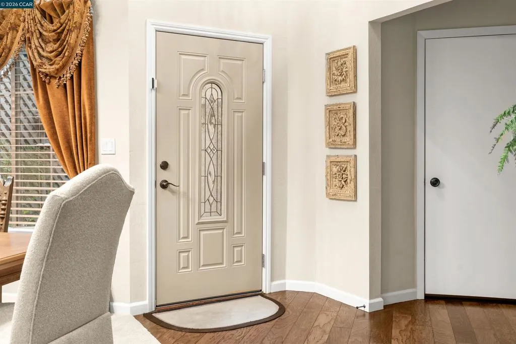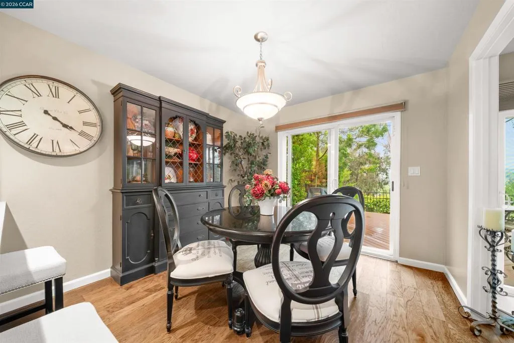 OPEN 4/26, 1PM-4PM! Ideally situated within the prestigious gates of Silver Oak Blackhawk, this beautifully remodeled residence offers a rare blend of sophisticated design and prime location. Enjoy the convenience of being walking distance to premier dining and shopping at Blackhawk Plaza while backing to serene open space with direct access to scenic walking trails. The home makes a grand impression with a two-story foyer and formal dining area, accented by rich Hickory wood flooring throughout the main living spaces. The kitchen features premium quartz countertops, a bright eat-in area, and tranquil views. The heart of the home is a spacious living room centered by a fireplace that has been remodeled with natural travertine stone to the ceiling and custom built-in cabinetry. Retreat to the primary suite, a sanctuary boasting cathedral ceilings, a cedar-floored walk-in closet, and a masterfully remodeled spa-like bathroom with quartz countertops, dual sinks, a soaking tub, and an expanded shower. All bathrooms have been recently updated with quartz surfaces and modern hardware. Outside, a large Ever-grain composition deck overlooks the hillside with no rear neighbors for added privacy. Includes an attached garage with extensive storage, nearby guest parking, and access to community pool amenities.