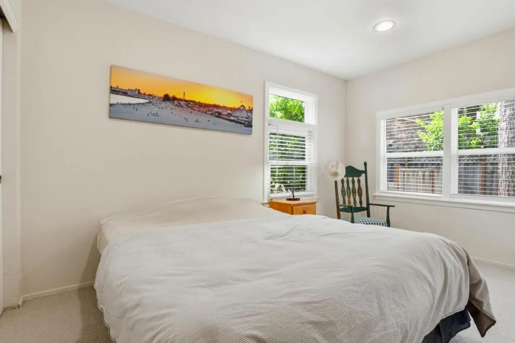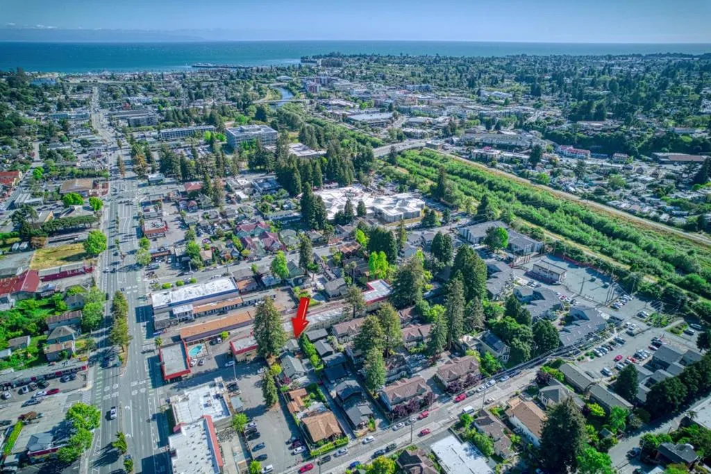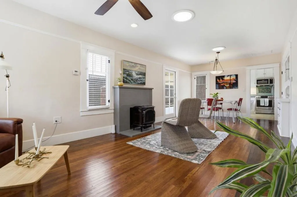 Charming Single Story Beach Bungalow in Sunny Santa Cruz, ideally located near UC Santa Cruz, Downtown, beaches, and the Boardwalk. This unique coastal property features an approximate 1056 SF 2-BD/1.5-BA main home plus a detached 320 SF 1BD/1BA garden cottage on a spacious 7,362 SF gated lot. The renovated 1924 bungalow blends classic character with modern comfort, including hardwood floors, plush carpet, fresh interior and exterior paint, original built-ins, updated lighting, a modern gas fireplace, forced-air heating, and a solid roof. An open layout flows seamlessly to decking and concrete patios for easy indoor-outdoor living. A majestic heritage redwood anchors the yard, creating a peaceful coastal setting. The updated kitchen features stainless appliances, tile countertops, a farmhouse sink, new micro-hood, interior laundry and abundant storage. Outdoor spaces include wraparound decks, patios, mature trees, and garden beds. Detached office/guest space, carport with storage, and bonus outbuilding offer flexibility for guests, rental income, or a relaxed coastal retreat.