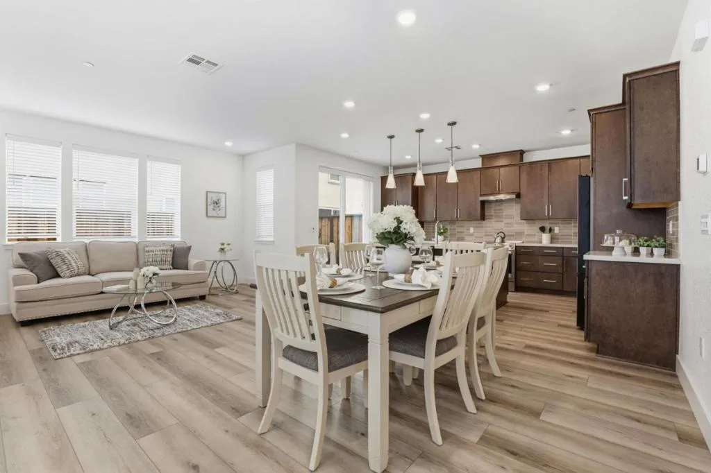 Welcome to Morgan Hill! This exquisitely crafted, newly built attached home boasts 3 bedrooms and 2.5 bathrooms and is nestled in the desirable Sundance at Rosewood community. Built in 2024, this two-story home seamlessly fuses comfort, practicality, and modern design. Upon entry, you’ll be welcomed by a bright and spacious open floor plan featuring quartz countertops, soft-close cabinetry, and stylish Bosch appliances in a thoughtfully designed kitchen. The contemporary feel of the home is enhanced by elegant lighting fixtures, upgraded carpets on the upper level, & wide-plank laminate flooring throughout the main level. Notable amenities include an owner-owned solar panel system for energy efficiency, a brand-new washer and dryer, custom windows w/ premium window treatments, water softener & various designer enhancements distributed throughout the residence. 2 car attached garage w/ access to the interior of the home. Ideally situated near 101, top schools, shopping & entertainment. This home is merely steps from a vibrant public park, complete with BBQ & picnic spots, picturesque walking paths, trails, a playground, & a pickleball court, providing an outstanding blend of convenience and outdoor enjoyment. Seize the opportunity to make this move-in-ready treasure your own!