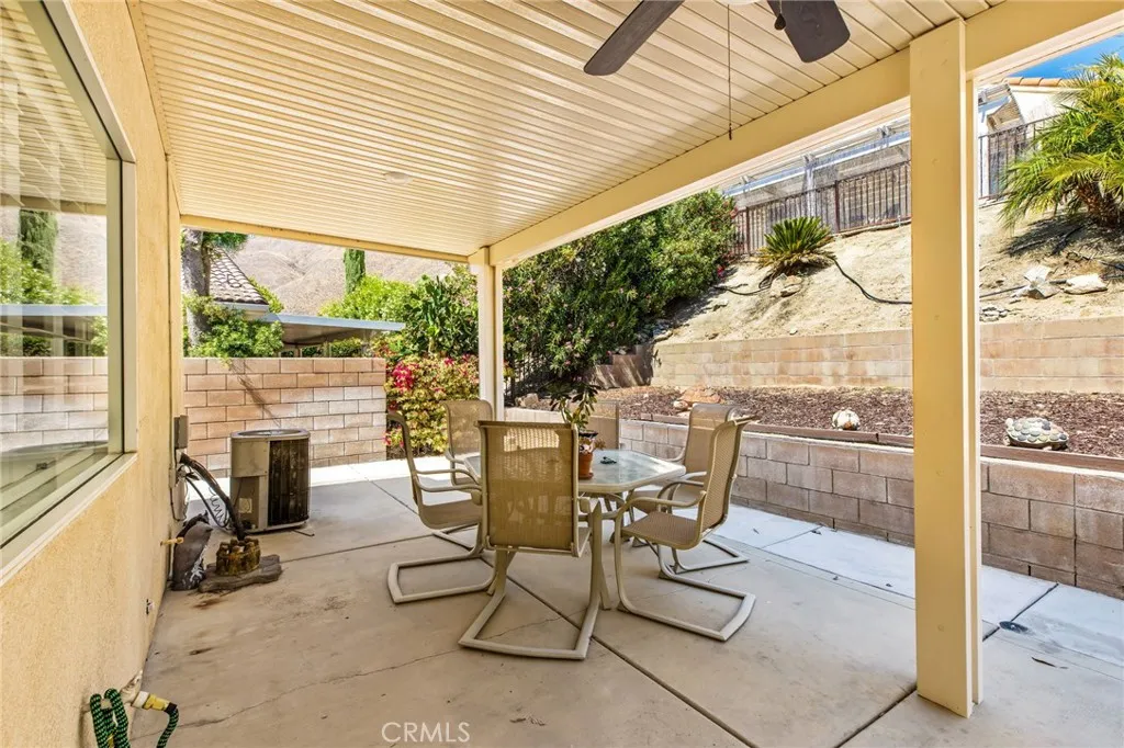 Positioned just moments from the renowned Soboba Casino Resort and the scenic Soboba Springs Golf Course, this beautifully upgraded single-story residence offers the perfect blend of comfort, convenience, and lifestyle-driven living. Spanning approximately 1,300 sq. ft., this turnkey 2-bedroom, 2-bath home welcomes you through a private enclosed side patio entrance into a light-filled open floor plan designed for effortless everyday living. Inside, you’ll find luxury vinyl plank flooring and plantation shutters throughout, complemented by an abundance of natural light that enhances every space. The kitchen is thoughtfully appointed with stainless steel appliances, generous storage, and seamless flow into the main living areas. Both bedrooms are well-proportioned, with a spacious primary suite featuring an en-suite bath for added privacy. Step outside to a fully landscaped backyard designed for low-maintenance enjoyment, complete with an extended covered patio, ceiling fan, mature trees and shrubs, and a retaining wall that adds both dimension and privacy, while fully cemented side yards provide clean, functional outdoor space. Whether you’re seeking a full-time residence, investment or a lock-and-leave option, this home delivers refined, easy living in a prime location where entertainment, golf, and relaxation are all just minutes away.