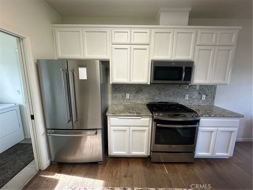 The nearly 2,000 sq. ft. home features 3 bedrooms and 2 bathrooms, with engineered hardwood flooring throughout most of the living space, complemented by ceramic tile in the entry and bathrooms. The spacious kitchen is designed for both style and function, showcasing gorgeous granite countertops and ample workspace. A durable stucco exterior and composition roof add to the home’s low-maintenance appeal. Also, the home has solar and is owned, no lease!