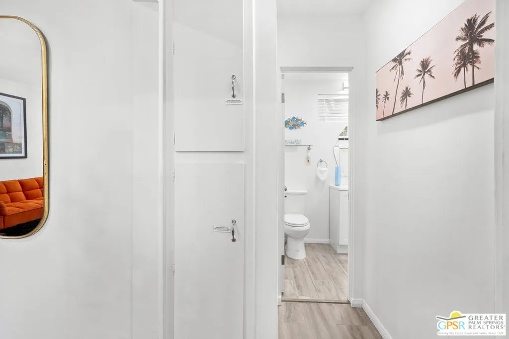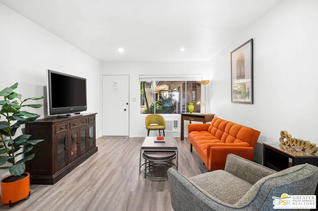 Step into a piece of Palm Springs history with this beautifully renovated 1BD/1BA condo, located in the exclusive Desert Skies community. Originally built in 1958, this mid-century gem has been tastefully transformed with modern updates, including fresh paint, new flooring, stylish lighting, refurbished original metal kitchen cabinets, and appliances. Nestled in the desirable Indian Canyons neighborhood, you’ll have easy access to the best shopping, dining, golf courses, and scenic hiking trails in South Palm Springs. Desert Skies offers a luxurious range of amenities for your enjoyment. Take a dip in one of the two sparkling pools, unwind in the rejuvenating spa, or gather with friends in the BBQ area or community rooms. The serene courtyard, surrounded by breathtaking mountain views, creates the perfect backdrop for relaxation. Additional conveniences include onsite parking and laundry facilities.