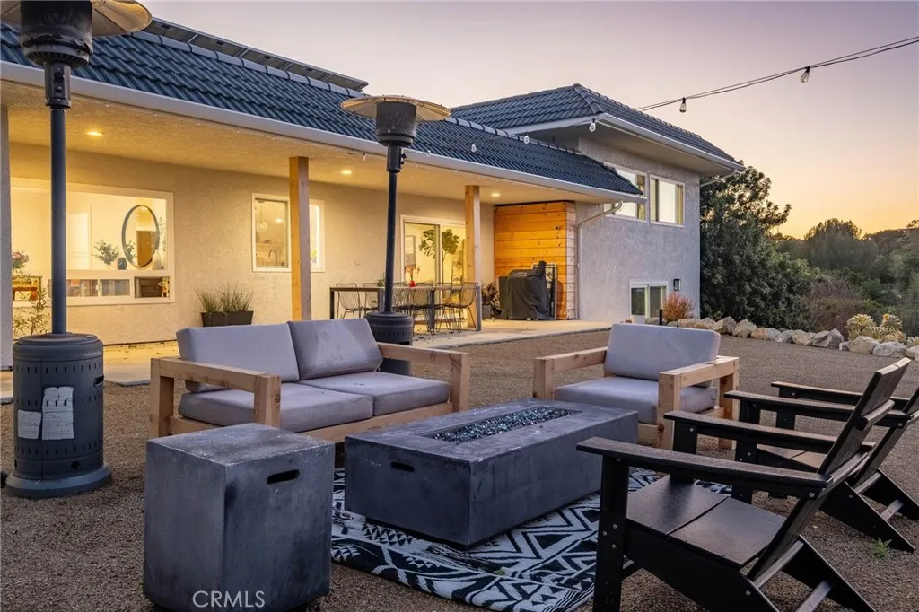 Downstairs, a bonus space with direct yard access adds flexibility for a home office, gym, or additional living area. Outside, multiple patio areas, updated landscaping, a hillside with grapevines, and a firepit area positioned for city light views create a setting that’s equally suited for quiet evenings or hosting.
