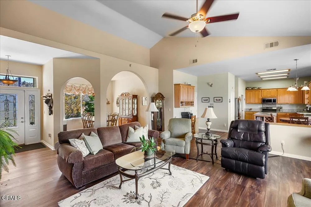 Your Hilltop Haven! Perched atop 3.86 private acres in the beautiful, gated community of Bear Valley Springs, this custom Cannon-built home captures breathtaking panoramic views of the valley, lakes, and surrounding mountains. Originally built in 1999 and thoughtfully expanded in 2006, the spacious 4-bedroom, 3-bath split-wing design offers both comfort and versatility.Step inside to a light-filled, open floor plan featuring a welcoming living room with a cozy wood stove, graceful architectural arches, and a seamless flow into formal and casual dining spaces. The well-appointed kitchen is a cook’s delight, complete with granite countertops, abundant cabinetry, a walk-in pantry, breakfast nook, and plenty of room to gather.The expanded living area creates an ideal private retreat for guests or multi-generational living, offering a comfortable sitting area, wet bar, bedroom, bath, and generous closet space.The primary suite provides a peaceful escape, featuring a walk-in closet, relaxing jetted tub, dual-spray shower, and a large picture window perfectly framing the natural beauty beyond. Ceiling fans throughout ensure year-round comfort, while recent updates include luxury vinyl plank flooring and plush carpet.Additional highlights include a 3-car garage with built-in storage, dual HVAC systems, fiber optic internet, and two 50-amp outlets ready for RVs or EVs. Outside, enjoy multiple view decks, garden areas, a storage shed, and a versatile workout/wine room (approx. 120 sq ft, not included in total square footage).Lovingly maintained and surrounded by unforgettable views, this special property invites you to relax, unwind, and truly feel at home.