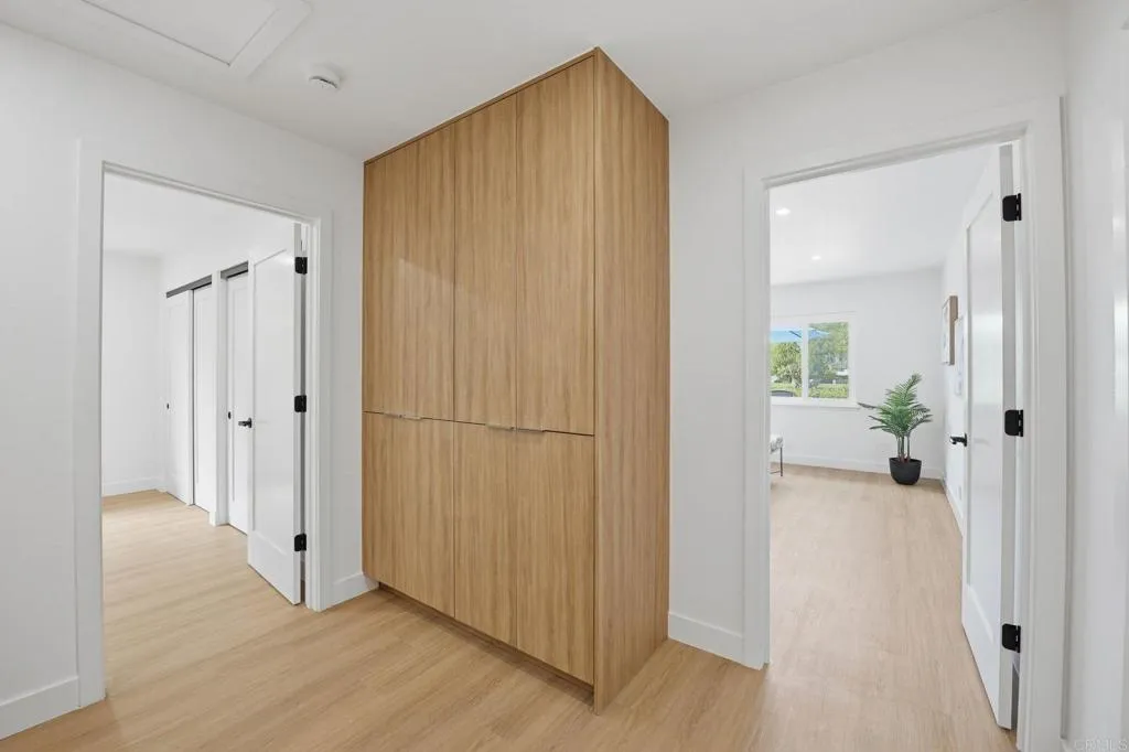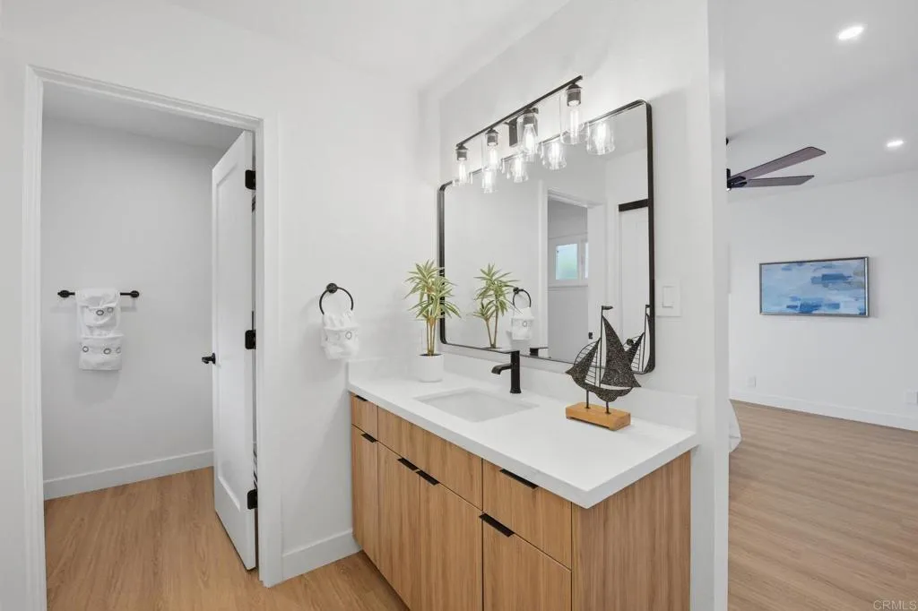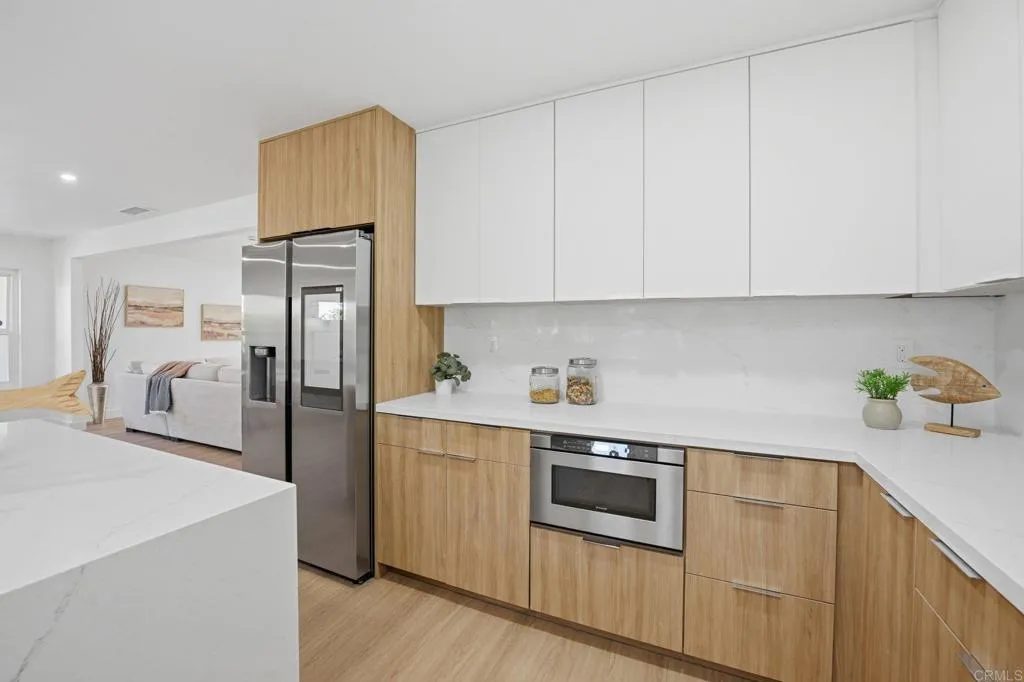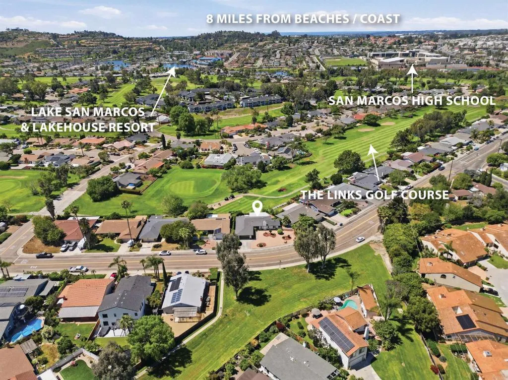 Step into this spectacular Lake San Marcos home, professionally designed and renovated from floor to ceiling, where refined modern design and gorgeous views of the garden, green space, or golf course from every window draw you through the space. An inviting layout places the kitchen at the center, creating a natural flow and connection between the living and dining areas. The reimagined kitchen features custom-built cabinetry, elegant quartz surfaces extending across the countertops, full backsplash, and waterfall island along with all-new stainless-steel appliances including a smart frig with digital touch screen, 5-burner range, and microwave drawer; a pass-through connects to the dining area, where sliding doors open to the patio for indoor-outdoor flow. Bathrooms are fully renovated with custom cabinetry, quartz countertops, Moen® fixtures, and showers with porcelain tile surround and frameless glass doors. The en suite primary bedroom features dual closets, ceiling fan, and peaceful garden views. Additional features: LVP flooring, recessed lighting, shaker-style doors, Decora® switches & outlets, Nest® thermostat, solid walnut front door, dual-pane windows, and more – see list uploaded to MLS. Ideally positioned behind the Hole 15 tee off box outside the direct line of play, the backyard opens to fairway & foothill views, creating a peaceful setting for entertaining or dining al fresco. Set on an oversized lot with green space across the street, the front yard offers additional space for outdoor living. Optional resort membership provides access to golf, gym, lake activities, pools, tennis, pickleball, boat mooring, and more. Enjoy lakeside dining at Amalfi or the Marina Bar, plus nearby shopping, dining, and conveniences, with the coast about 8 miles away. Meticulously maintained golf course with NO HOA. Termite clearance provided. Homes with this level of renovation, setting, and views are a rare find—don’t miss this opportunity to make it yours.