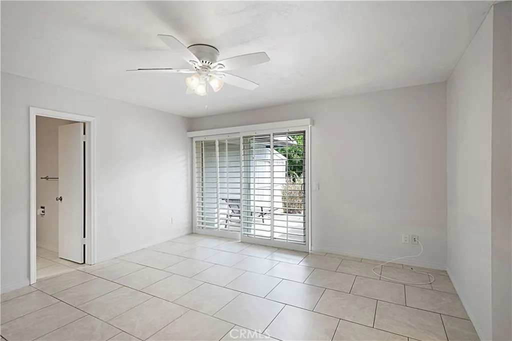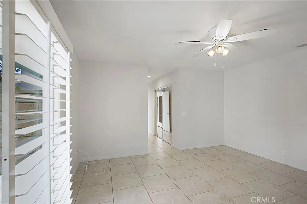 The interior showcases tile flooring throughout, elegant window shutters, and a beautifully updated kitchen with stainless steel appliances, including a refrigerator. In-unit washer and dryer hookups add everyday convenience, while the open-concept layout is filled with natural light, creating an inviting space for both living and entertaining.