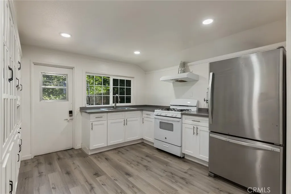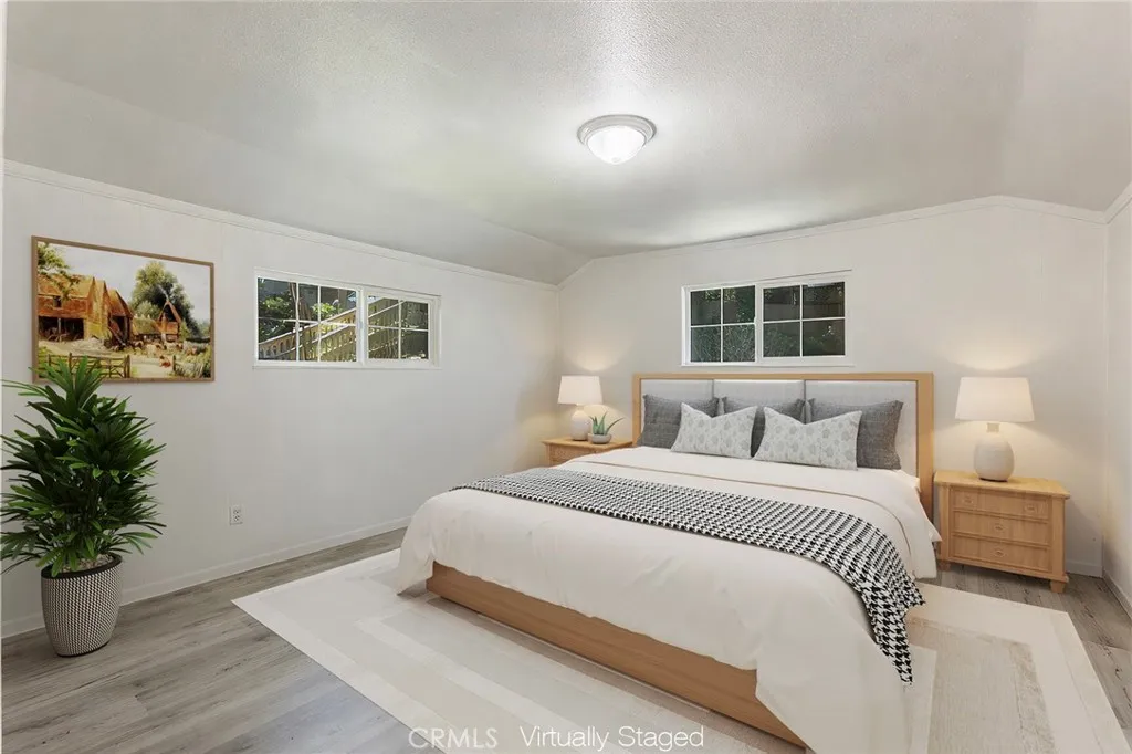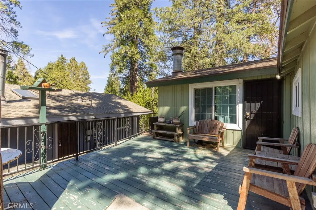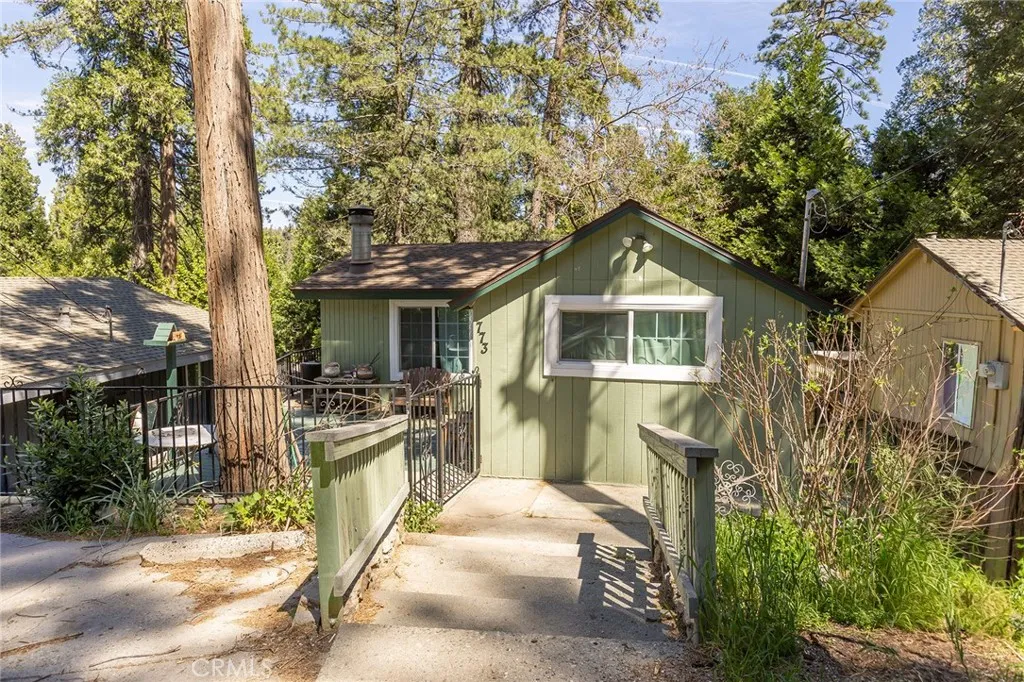 Just minutes from Lake Gregory and Crestline Village, 773 Woodland Road is a FULLY RENOVATED two-bedroom cabin that punches well above its square footage — whether you’re looking for a personal weekend escape, a full-time mountain residence, or a turnkey short-term rental investment. THE RENOVATIONS ARE DONE: new laminate flooring and subfloor throughout the main level, a beautifully updated kitchen with modern cabinetry, new stove, recessed lighting, and a charming built-in pantry — plus a fully retiled bathroom with porcelain floors, new vanity, and tiled shower surround. Nothing to do but move in (or start booking guests). Step off the kitchen onto a spacious private deck surrounded by mature pines — the kind of outdoor space that makes mornings in the mountains feel like a completely different life. The two-level layout gives you real flexibility: main-level bedroom and full bath for primary living, with a second bedroom and living area downstairs opening directly to the backyard — ideal for guests, a home office, or extended family stays. RARE FOR CRESTLINE: off-street parking for two vehicles. Add indoor laundry, beamed ceilings, a cozy fireplace, double-pane windows, and zoned heating and cooling, and this cabin is dialed in year-round. Previously rented successfully and representing a compelling STR opportunity in one of Southern California’s most accessible mountain communities — just one hour from LA, Orange County, and the Inland Empire. Buyer to verify short-term rental regulations with the county.