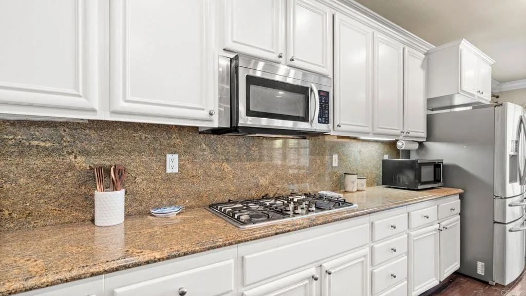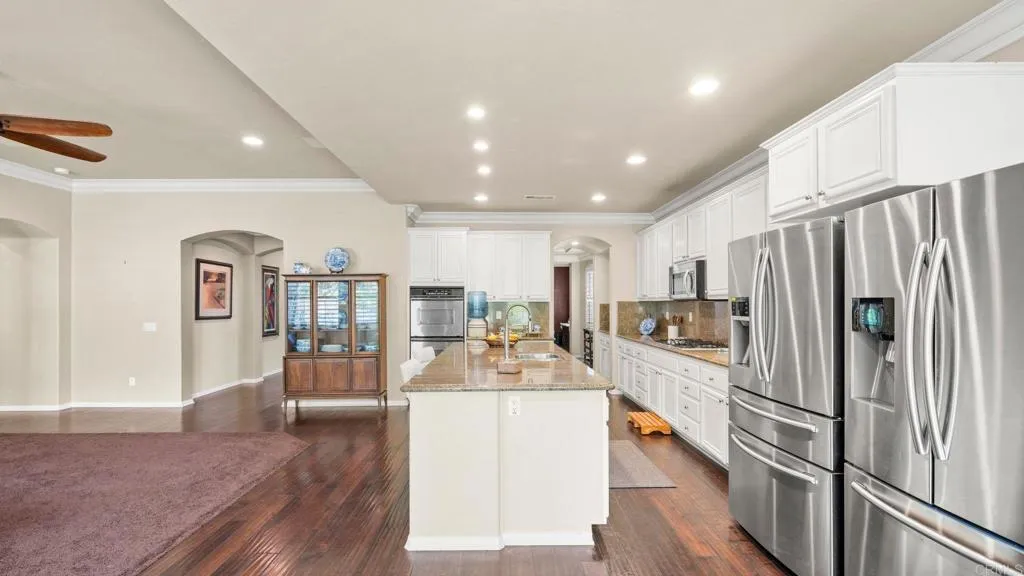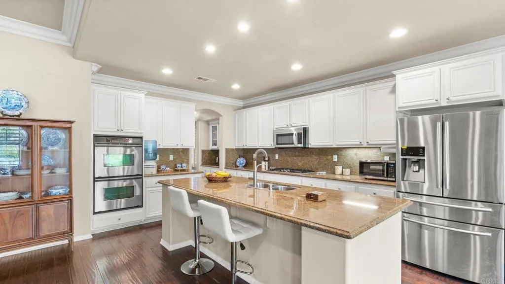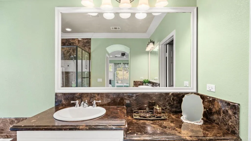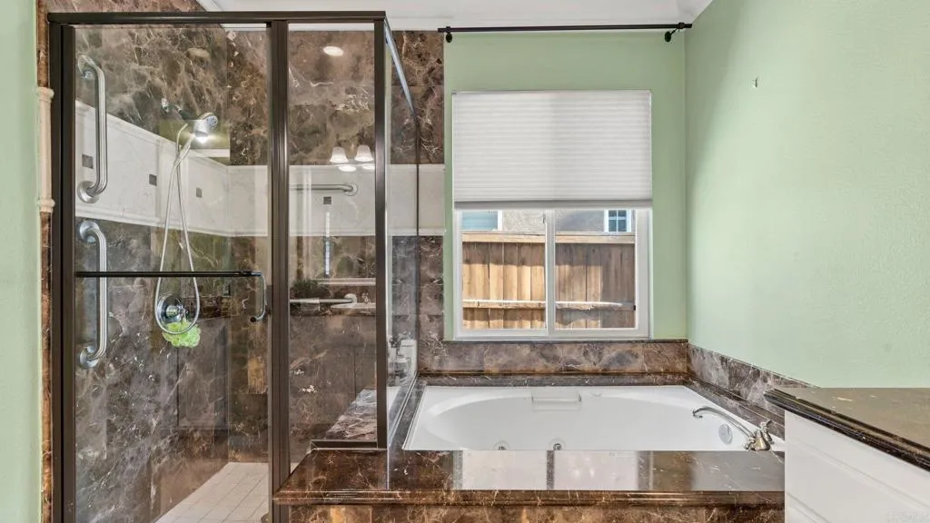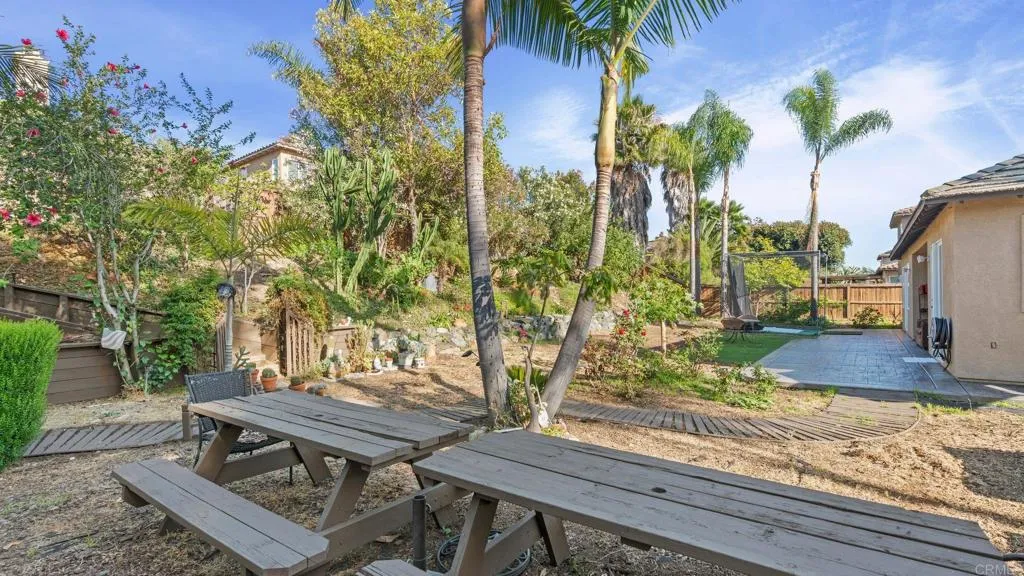 Welcome to this beautifully maintained single-story residence located on a rare 0.3-acre corner lot in the highly desirable EastLake / Otay Ranch community of Chula Vista. This home blends comfort, functionality, and thoughtful upgrades, offering a lifestyle of ease and indoor-outdoor living. Step inside to an inviting open-concept floor plan featuring elegant crown molding, adding warmth and architectural detail throughout the main living spaces. The home showcases stylish marble flooring in the bathrooms, elevating the primary and secondary baths with a refined, timeless finish. The kitchen and entertaining areas flow seamlessly, enhanced by abundant natural light and a layout designed for both everyday living and hosting. Outside, the expansive lot offers exceptional privacy and curb appeal, with professionally designed outdoor space featuring stamped concrete hardscape, ideal for entertaining, dining, and low-maintenance enjoyment of the backyard. The property is enriched with mature fruit-bearing trees, including tangerine, pomegranate, persimmon, and Italian guava, creating a lush, productive landscape that feels like a private orchard. The generous lot size provides room for gardening, outdoor expansion, or simply enjoying the open space. Additional highlights include a single-level layout for convenience, a well-established neighborhood setting, and close proximity to parks, schools, shopping, and community amenities. A rare combination of upgraded interiors, resort-style outdoor living, and a premium oversized lot, this home stands out as a true EastLake opportunity.