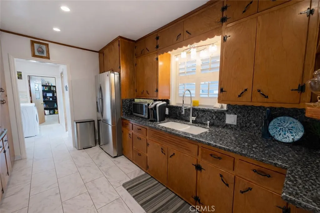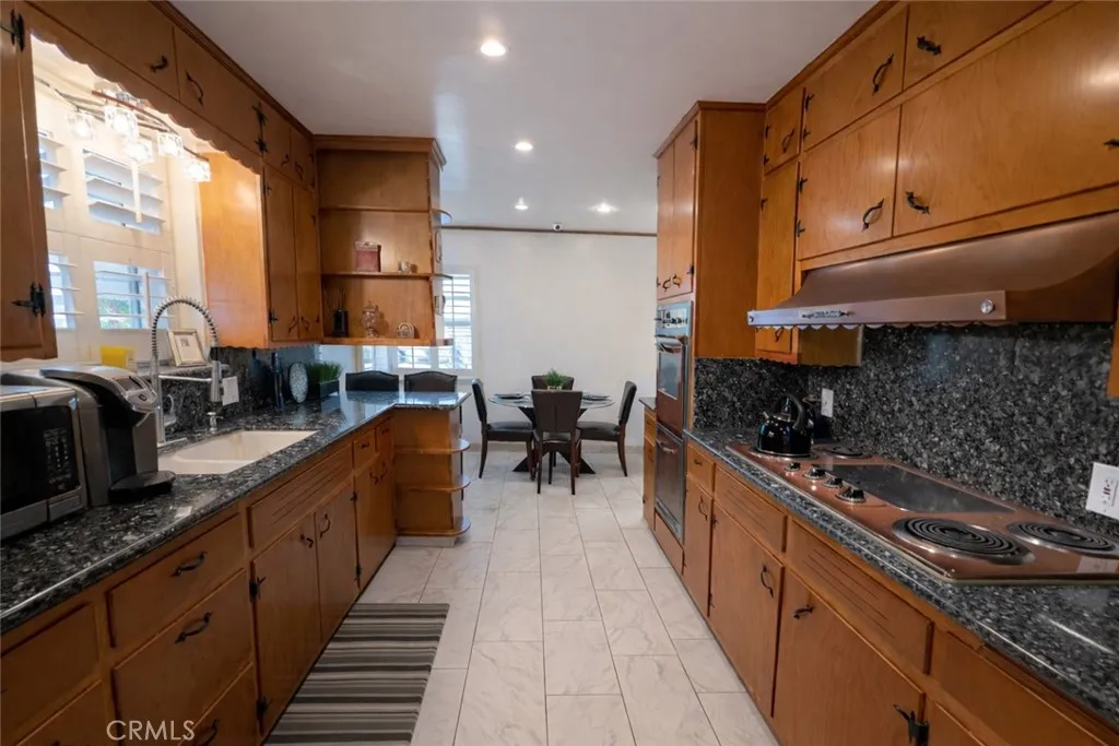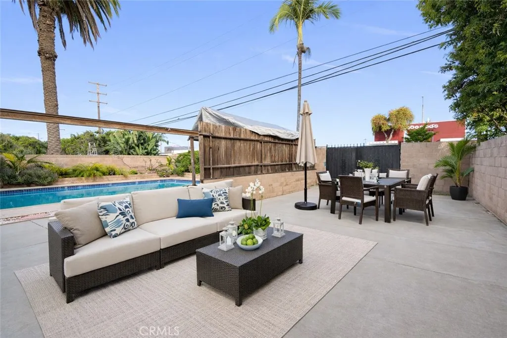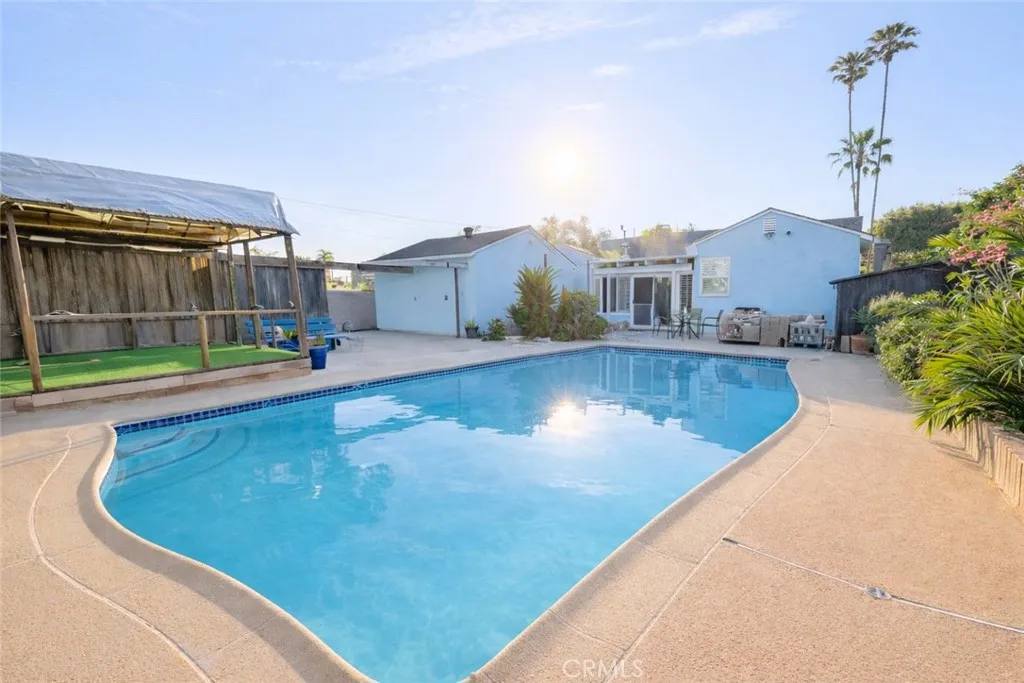 Welcome to this beautifully upgraded, custom-built pool home in the heart of Downey—a proud winner of the City of Downey Beautification Award! Set on a spacious 8,000+ sqft lot, this meticulously maintained property greets you with exceptional curb appeal, professional landscaping, and a wide front porch perfect for relaxing among fragrant flowers. Recently painted inside and out, the nearly 2,200 sqft interior features a seamless blend of original and new hardwood flooring, porcelain tile, and exquisite custom woodwork throughout. The updated kitchen boasts custom oak cabinetry with pantry, blue pearl granite countertops, full backsplash, peninsula seating, Kohler fixtures, and a vintage Thermador electric stove, oven, and broiler in perfect condition. This home includes four spacious bedrooms—three with custom ceiling fans and one with porcelain tile, marble accents, recessed and pendant lighting—and two fully remodeled bathrooms with designer Kohler fixtures, marble and porcelain finishes, cast iron tub, custom double vanity, and elegant lighting. The formal dining room, large living room with marble wood-burning fireplace, and step-down den with a second fireplace and pool views create inviting spaces for entertaining and comfort. Additional highlights include new double-pane windows with plantation shutters, whole house fan, attic cooling system, separate laundry room, and hallway with French doors. The oversized detached double garage, with a new roof and air vent, offers potential for an ADU, while the covered carport features a professional-grade hoist for car enthusiasts. There’s also ample RV/boat parking with a 250V hookup and a long driveway that accommodates up to 10 vehicles. The private backyard oasis includes a sparkling exercise pool and a fully powered tiki house, making it ideal for summer gatherings. Centrally located near top-rated schools, parks, shopping, golf courses, and freeways, this luxurious, move-in-ready home offers unmatched comfort, character, and income potential!