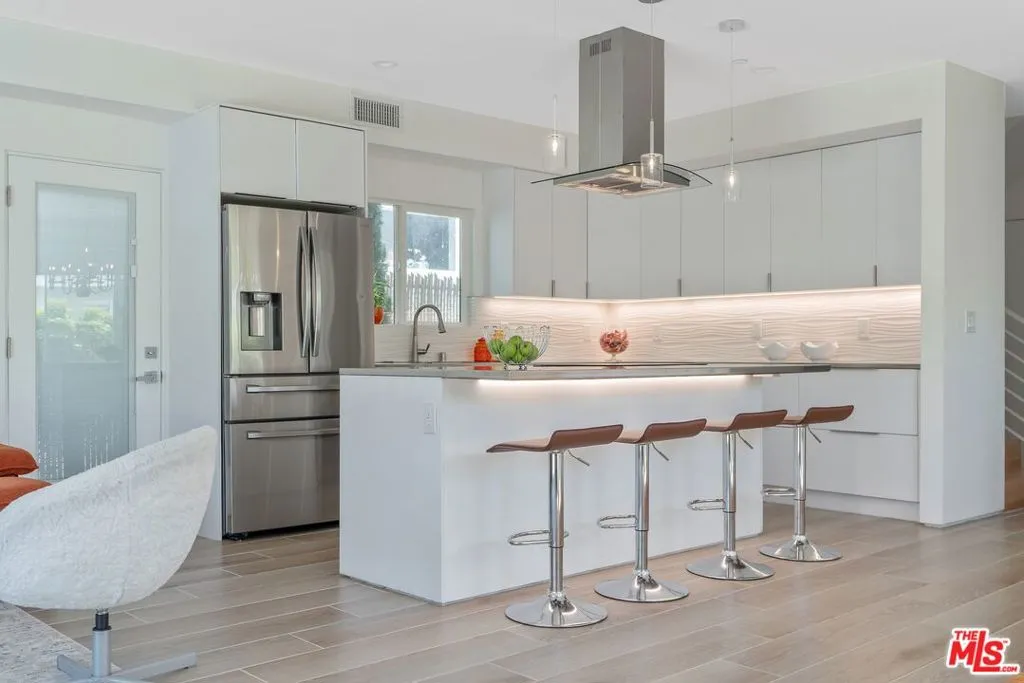 Built in 2023, this custom-designed home blends modern style with thoughtful efficiency, offering a light-filled layout in the highly sought-after Del Rey neighborhood. Designed for both comfort and functionality, the home features a smart four-bedroom floor plan, including a main-level bedroom and full bath ideal for guests or a home office. Upstairs, three additional bedrooms each enjoy their own private balcony, creating a seamless connection to the outdoors. The primary suite is a bright and tranquil retreat, complete with a spacious walk-in closet and a spa-inspired bathroom featuring a dual vanity. A generously sized laundry room is also conveniently located on the upper level. On the main floor, the open-concept design centers around a beautifully appointed kitchen with stainless steel appliances, abundant counter space, a large island, and ample storage all flowing effortlessly into the living and dining areas. Outdoor living is equally impressive, with a well-sized backyard and an expansive rooftop deck perfect for entertaining or relaxing under the California sky. Additional highlights include central heating and air conditioning, thoughtfully designed lighting, a finished garage with EV-charger readiness, and ample roof space for future solar installation. Clean, sophisticated, and perfectly tailored for Westside living, this exceptional home offers the best of modern California lifestyle.