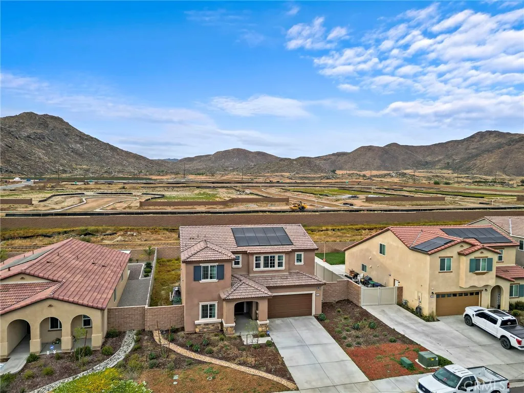 Welcome to this beautifully built 2024 home in the rapidly growing community of Winchester, where modern design meets everyday comfort. This Thoughtfully designed two-story home offers a bright open-concept floor plan, ideal for both entertaining and daily living. The spacious kitchen serves as the heart of the home, featuring a large island with seating, quartz countertops, stainless steel appliances, and upgraded stained maple cabinetry. High ceilings, recessed lighting, and luxury vinyl plank flooring. The main level includes a convenient bedroom, perfect for guests. Upstairs, you’ll find generously sized bedrooms, a versatile loft space ideal for a home office or additional living area, and a spacious primary suite complete with a walk-in closet and dual sink vanity. This home is energy-efficient, with a leased solar system (buyer to assume lease) and tankless water heater, 2 car garage is pre-plumbed for an electric car. Additional upgrades include an energy-efficient ERV (Energy Recovery Ventilation) system. The low-maintenance backyard is designed for ease and functionality. Located near parks, shopping, and easy freeway access, this home offers the perfect blend of convenience and modern living.