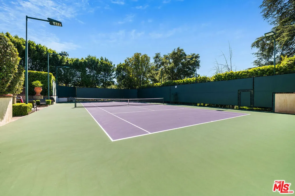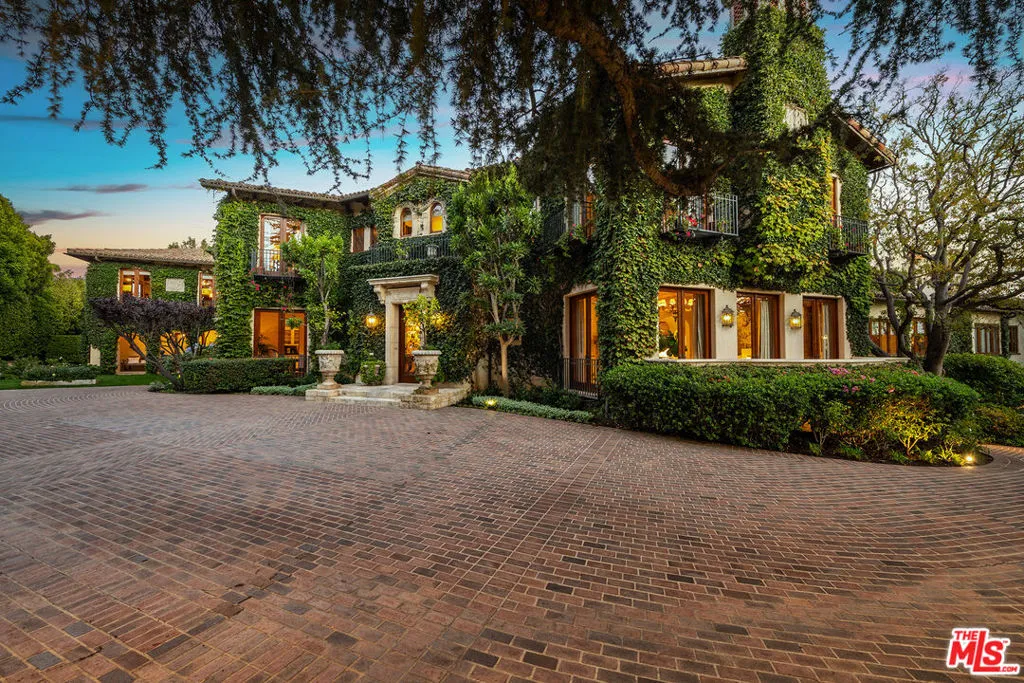 The Leonard Estate stands as the most important legacy property on the Westside – an extraordinary Italian villa of rare scale and pedigree, available once in a generation. Envisioned by world-renowned architect Richard Landry, this Florentine-inspired masterpiece was crafted with only the finest materials and exudes timeless elegance. Perched on nearly two acres of expansive, park-like grounds within the prestigious Palisades Riviera, the estate is hidden behind double gates, towering hedges, and a long private driveway, ensuring complete privacy and security. The ivy-clad facade opens to a grand motor court and sets the stage for over 16,700 square feet of exquisitely designed interiors. Vaulted ceilings, generous proportions, and seamless indoor-outdoor flow create a setting that is equally suited for intimate living or entertaining on a grand scale. The main residence features a dramatic two-story family room, a refined formal living room and dining room, a solarium, a gourmet kitchen with professional appliances and center island, and multiple wings devoted to leisure and entertaining, including a screening room, media room, and gym. There are seven bedrooms in total, with the primary suite serving as a private retreat offering a fireplace, spa-like bath, dressing rooms, and a terrace overlooking breathtaking ocean, canyon, and mountain views. The grounds are a world unto themselves: a sun-drenched oval pool and spa, lit tennis court with viewing pavilion, rolling lawns, meadow, putting green, and lush gardens framed by mature trees. A full two-story guesthouse adjacent to the pool includes a kitchen and guest accommodations, ideal for hosting visitors or poolside gatherings. The Leonard Estate is a true world-class residence that combines European romance with modern luxury, offering both sumptuous and serene living on one of the Riviera’s most coveted streets.
