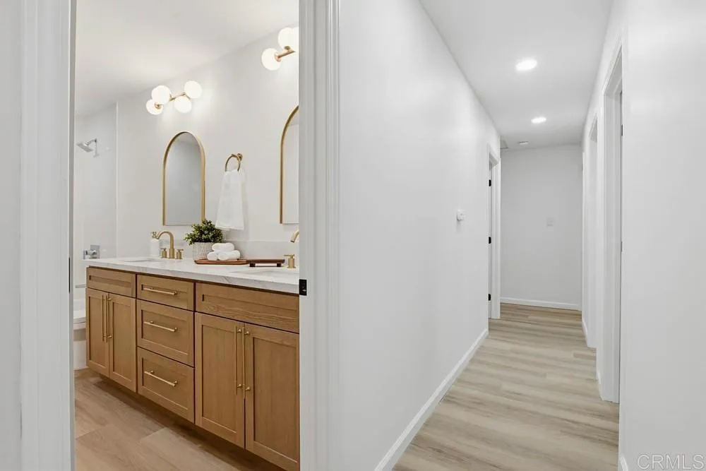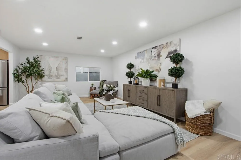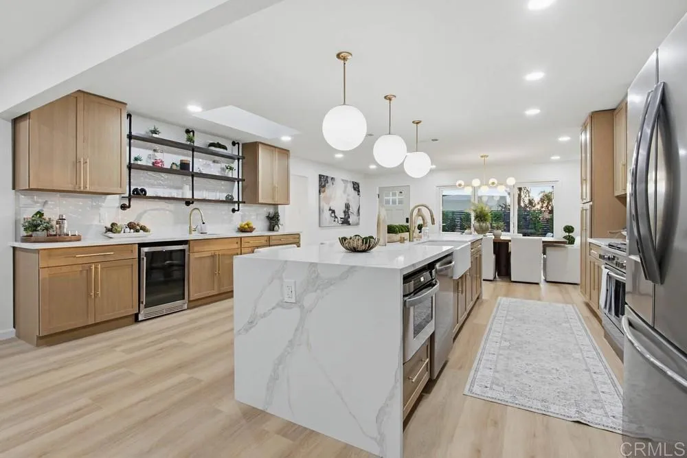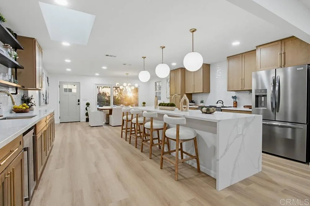 Located in the exclusive southwest Carlsbad neighborhood of greater Carlsbad Lagoon area is a stunning, renovated modern home that blends contemporary luxury with prime coastal convenience. Conveniently positioned near Tamarack Avenue and Adams Street just east of the interstate 5, home offers easy access location to everything Carlsbad has to offer–just minutes from beautiful beaches and Carlsbad Lagoon. This meticulously reimagined residence features sleek, modern design with impeccable attention to detail throughout. A standout highlight is the foldable window wall that effortlessly opens the indoor living spaces to an inviting, luxury outdoor patio–ideal for year-round entertaining, al fresco dining, or simply soaking in the California Sunset lifestyle. The heart of the home is the expansive, warm, and welcoming 12-foot quartz countertops, showcasing luxury appliances, an integrated service bar, a dedicated beverage fridge, SS main fridge, microwave built into the island makes this a classy tasteful design. The overall flow emphasizes openness, natural light, and sophisticated finishes that create a truly inviting atmosphere. This is a rare and reasonably priced home when comparing the modern finishes to the recently sold comparables in the area. Come tour this tremendous opportunity to own a turnkey, modern retreat in one of North County’s most desirable areas—perfect for those seeking style, functionality, beach proximity and unbeatable location without compromise.
