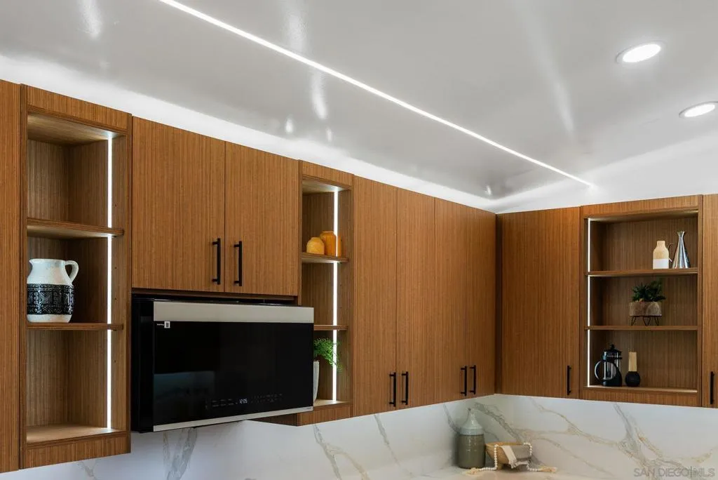 This breathtakingly beautiful West University City remodel is so gorgeous it could be a contender for the San Diego Home and Garden featured home of the month! Seller’s tasteful touch is sure to impress even the pickiest of buyers, featuring new light and bright paint, single beam vaulted ceilings, brand new LED lighted kitchen cabinetry and counter tops with waterfall, stainless appliances, spacious and airy family room with rectangular skylights, master retreat with ensuite resort-style bath with custom stone, lighted cutout, complete with jetted tub and open shower… too many upgrades to list! Enjoy a nice cup of coffee or glass of wine and take in those Socal breezes under the covered patio in the large, easy maintenance yard–perfect for BBQs and entertaining and with family fruit trees! This home is a dream come true.