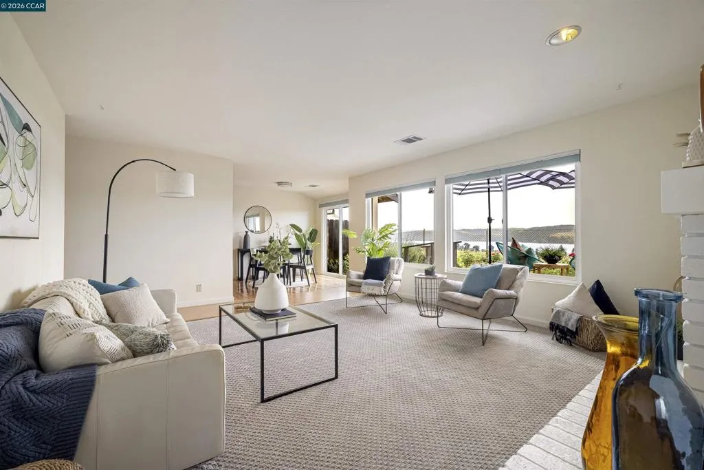 Benicia | Single-Level | 2BD/2BA | Panoramic Strait Views Set on a quiet street in an established Benicia neighborhood, this single-level 2-bedroom, 2-bath home offers panoramic views of the Carquinez Strait and the kind of everyday living that feels like a retreat. The open living and dining area flows directly to a backyard rose and lavender garden — a peaceful outdoor space with sweeping water views as the backdrop. Inside, the layout is simple and functional. The primary suite has a private bath; the second bedroom works equally well for guests or a home office. No stairs, no wasted space. Minutes to Benicia’s historic First Street, waterfront dining, and Highway 780. Don’t miss this one! Views: Carquinez