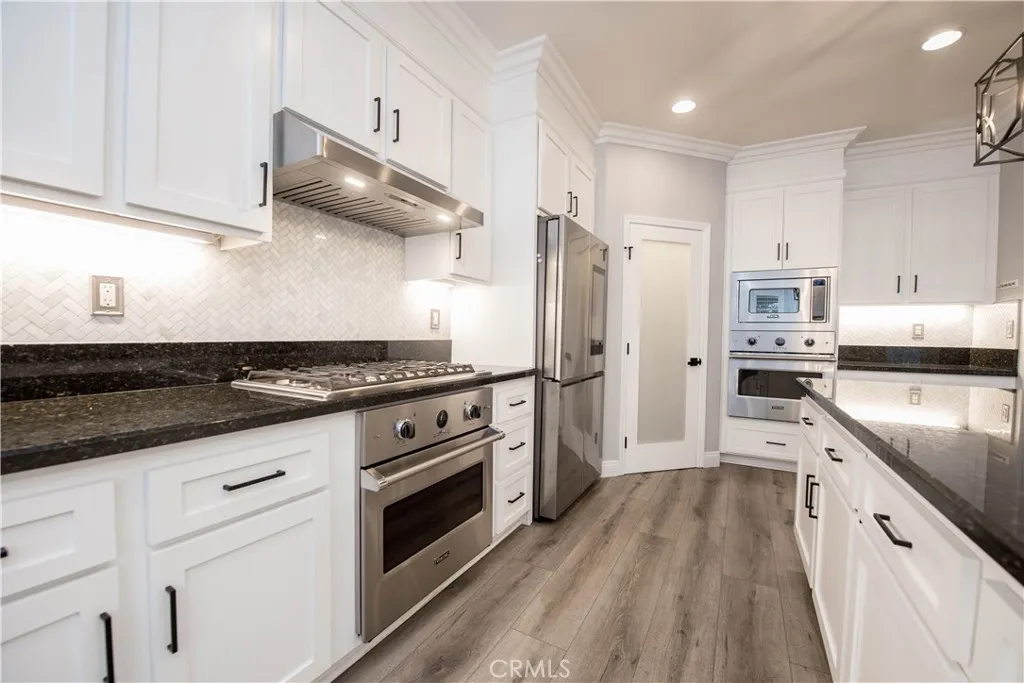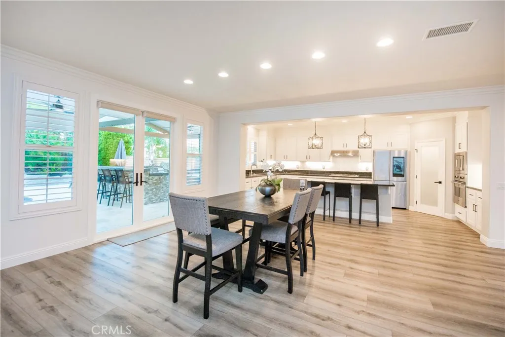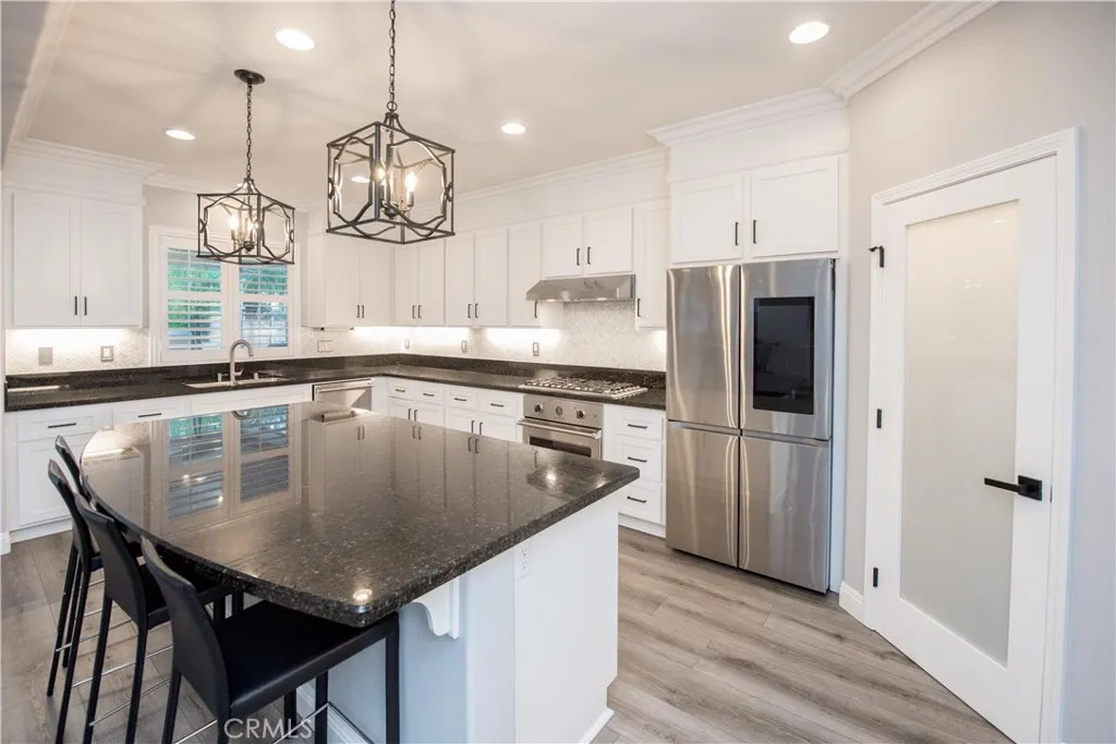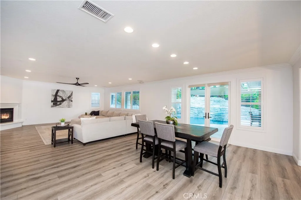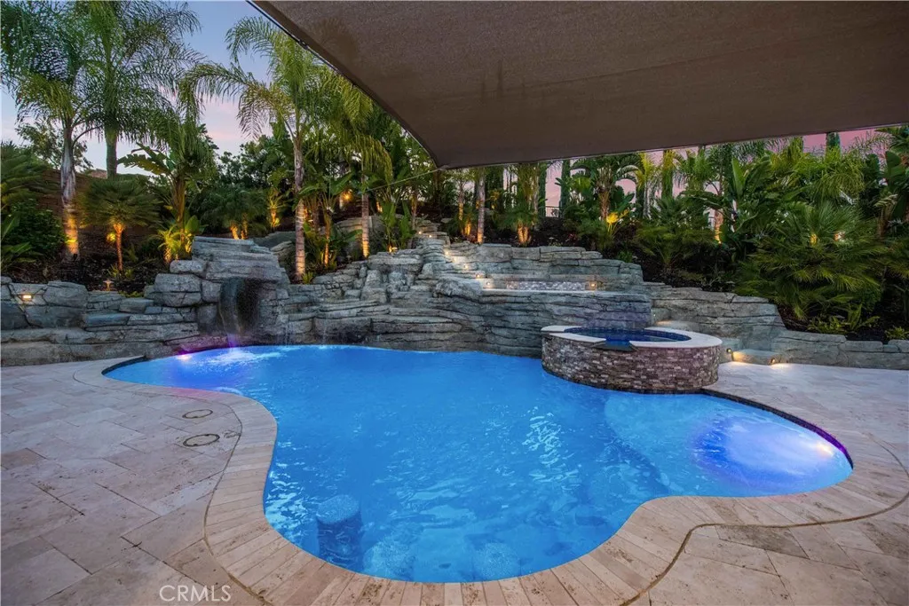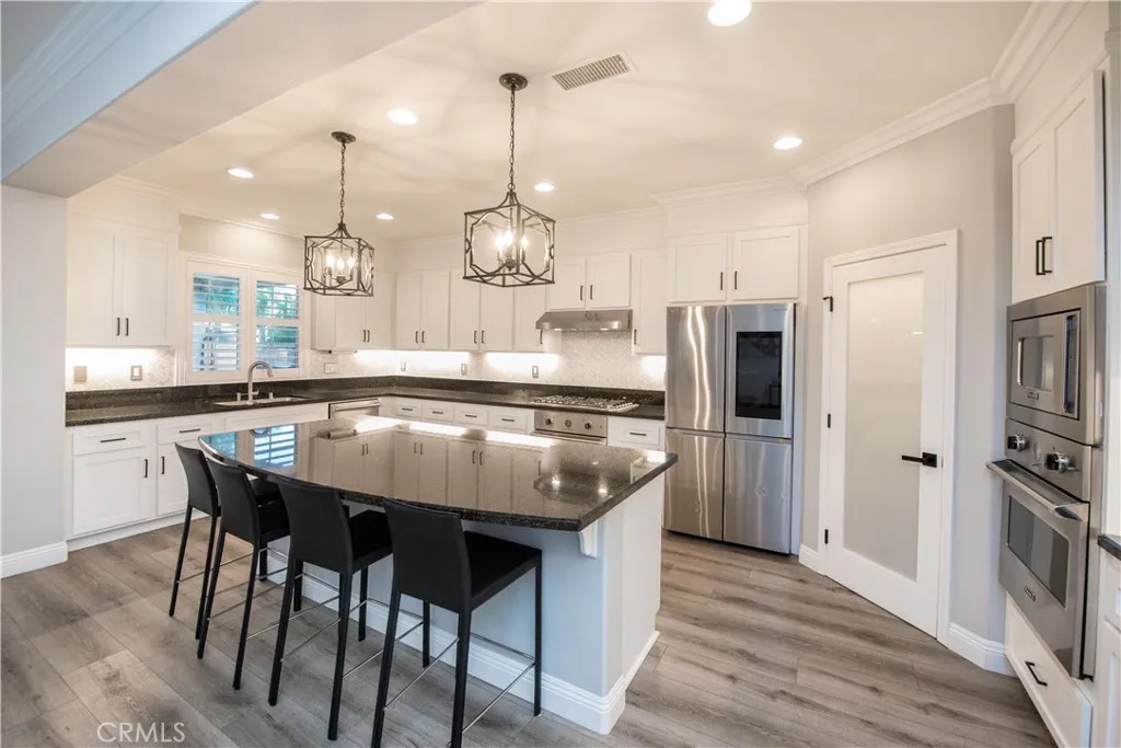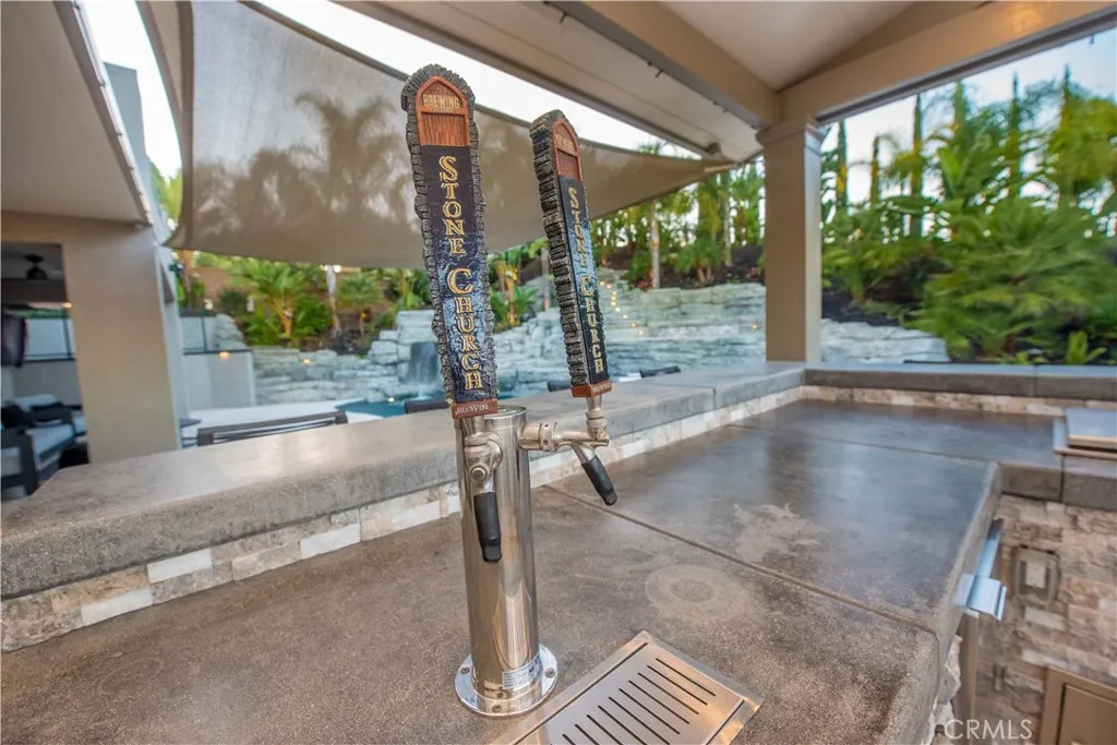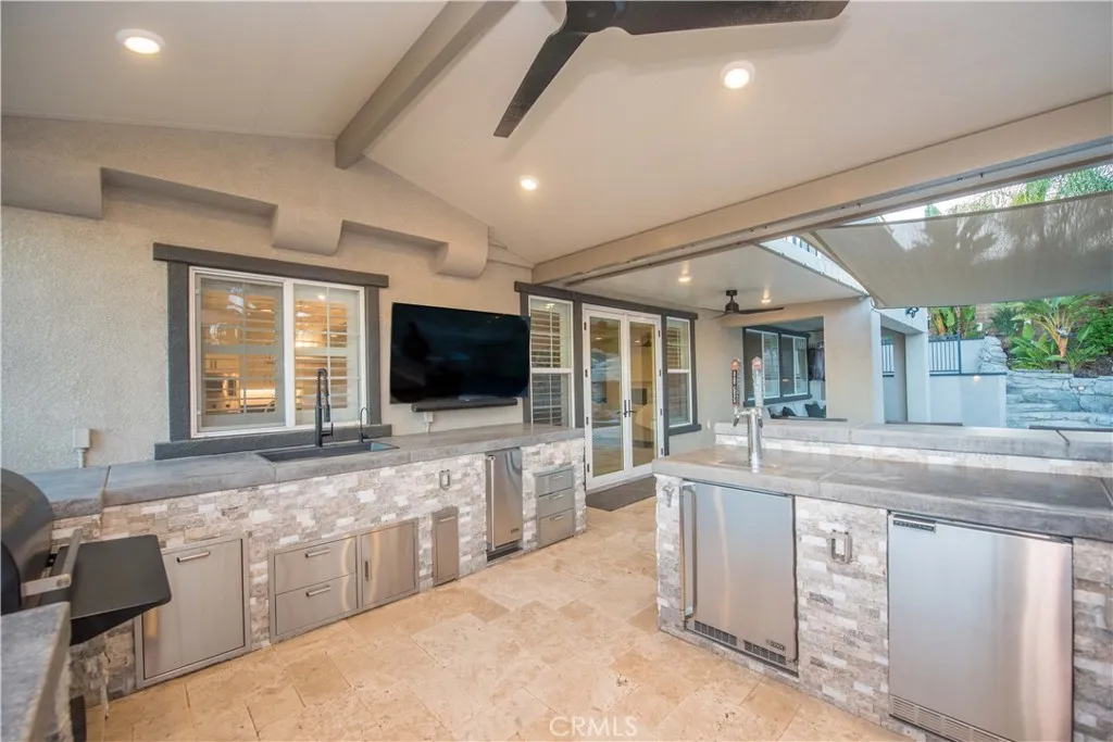 Welcome to a truly exceptional entertainer’s dream nestled in one of Corona’s most desirable gated neighborhoods, The Retreat. This expansive 6-bedroom, 6-bathroom residence offers approximately 4,248 square feet of thoughtfully designed living space, set on an impressive 12,197 square foot lot. Step inside to discover wide open living areas filled with natural light, perfect for both everyday living and hosting unforgettable gatherings. The home features two bedrooms on the main floor, including a private guest suite complete with its own bathroom and convenient kitchenette—ideal for multi-generational living or extended stays. The heart of the home is the beautifully upgraded kitchen, showcasing new cabinetry and premium stainless steel Viking appliances, seamlessly flowing into the spacious great room. Here, you’ll find a custom-built entertainment center and integrated surround sound system, creating the ultimate space for relaxing or entertaining. Upstairs, the primary suite offers a luxurious retreat with its own dedicated HVAC zone for personalized comfort. Additional highlights include a mini-split AC unit for enhanced efficiency and a versatile downstairs front room with a custom barn door—perfect as a private office or optional guest space. Step outside and experience resort-style living at its finest. The backyard is a true showstopper, featuring a sparkling pool and spa with a slide, tunnel, waterfalls, commercial quality misting system and a bubbling volcano feature—all WiFi-controlled through the iAqualink app. Enjoy evenings around the elevated fire pit with built-in seating, or entertain effortlessly with the full outdoor kitchen, complete with a sink, Viking pellet ice maker, and authentic Argentinian grill. Multi-zone Sonos outdoor audio and custom lighting elevate every occasion. The expansive side yard includes a professionally graded 60′ x 10′ turf area, perfect for a putting green, bocce ball, cornhole, or simply enjoying outdoor activities. This home is as practical as it is luxurious, featuring a Generac whole-home natural gas generator for uninterrupted power, a Tesla charging station in the garage, and a paid-off solar lease for energy efficiency. Ideally located near top-rated schools, parks, and shopping, this one-of-a-kind property offers the perfect blend of comfort, convenience, and high-end living. Don’t miss the opportunity to make this extraordinary home yours.