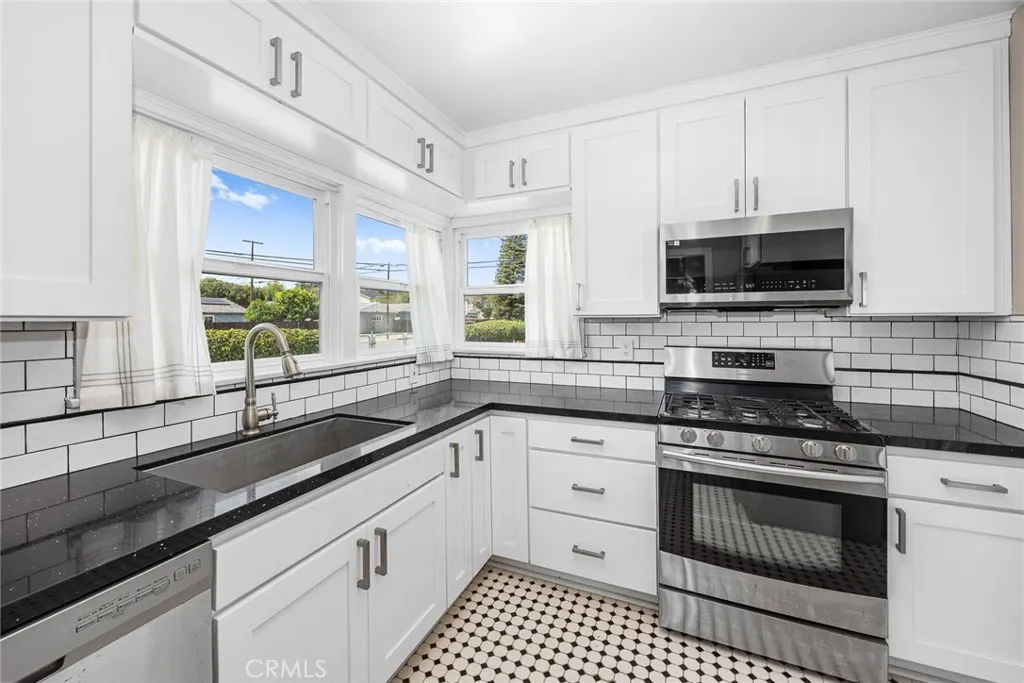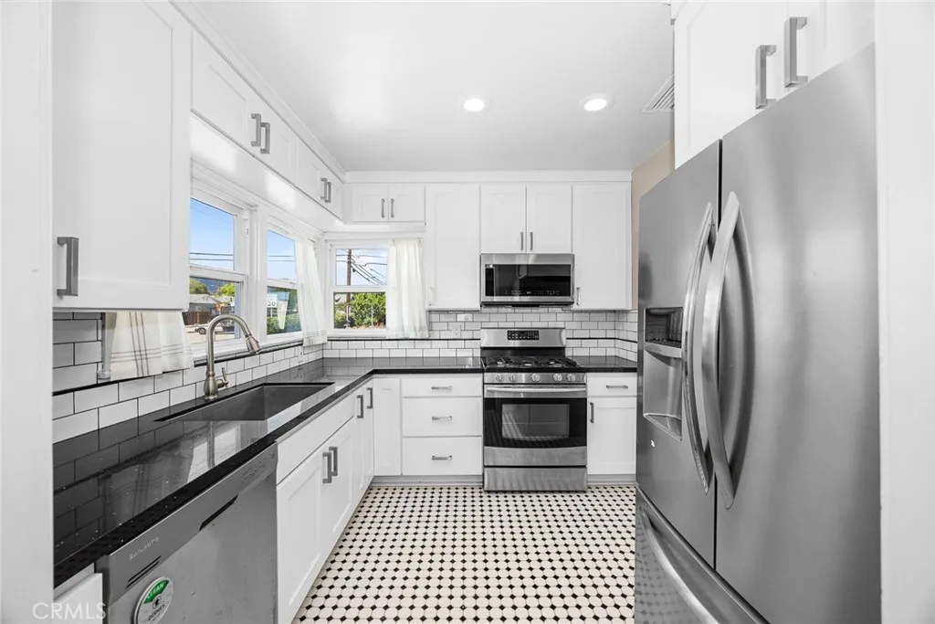 Experience modern comfort and timeless charm at 1811 Bonita Ave in the highly sought-after city of La Verne. This beautifully maintained 2-bedroom, 1-bath home is nestled in a desirable neighborhood known for its top-rated schools. Step inside to a bright and spacious living room featuring gorgeous hardwood floors that flow seamlessly into the dining area and kitchen. The well-appointed kitchen boasts granite countertops, stainless steel appliances, a farmhouse sink, and ample cabinetry for storage. Both bedrooms are generously sized, offering comfort and style, while the updated bathroom showcases classic subway tile, a designer sliding glass shower door, and a modern vanity. Additional highlights include recessed lighting, central A/C, dual-pane windows, and a professionally landscaped front and backyard. The garage features a unique rock climbing setup, adding a fun and functional touch. Enjoy the expansive, park-like backyard—perfect for relaxing or entertaining. The property also includes a 2-car detached garage and an approximately 273 sq. ft. bonus room, ideal for guests, a home office, podcast studio, or potential ADU conversion. Located just minutes from Downtown La Verne, local colleges, dining, shopping, and freeway access, this home also sits along the city’s beloved 4th of July parade route. Move-in ready and full of character, this is a rare opportunity you won’t want to miss!
