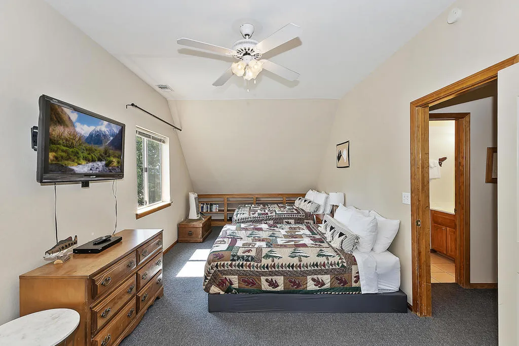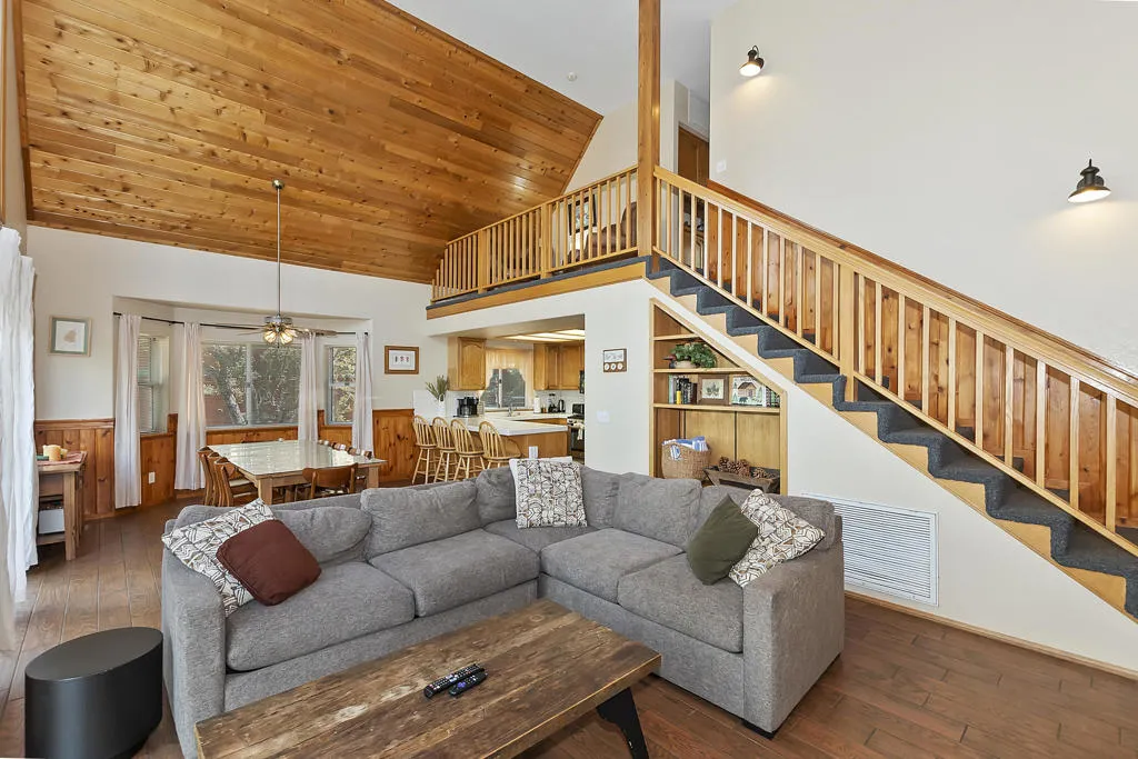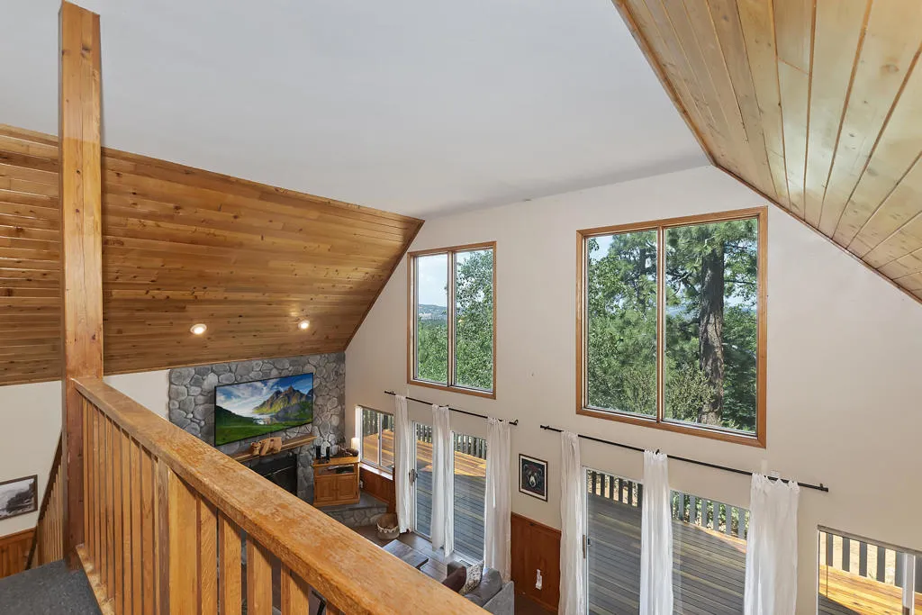 What A View! The Wall Of Windows To Back Deck With Views Of The Valley And National Forest Is What Big Bear Is All About. This Moonridge Beauty Is Boasting A Spacious Great Room With Vaulted Ceilings And Wood Burning Fireplace With Impressive River Rock Surround Where Everyone Can Be Together. Kitchen Has A Generous Amount Of Storage And Counter Space. The Large Back Deck Has A Hot Tub And The Nice Sized Backyard Has Plenty Of Room And A Horseshoe Pit. Upstairs Has A Loft Area For A Morning Cuppa With The View Out Of The 2-Story Windows. Downstairs Has 2 Bedrooms And A Full Bath And Upstairs Has 2 More Bedrooms With Another Full Bath. Direct Access Garage With Level Driveway On The Sunny Side Of The Street Makes For Easier Snow Melt. The Bonus Room Over The Garage Is An Incredible Space With Many Opportunities. Hiking Trails Right Down The Street, About 2 Miles To Bear Mountain Ski Resort, Golf Course, Alpine Zoo. About 3 Miles To The Shore Of Big Bear Lake. Has Been A Vacation Rental, Income Possibilities!