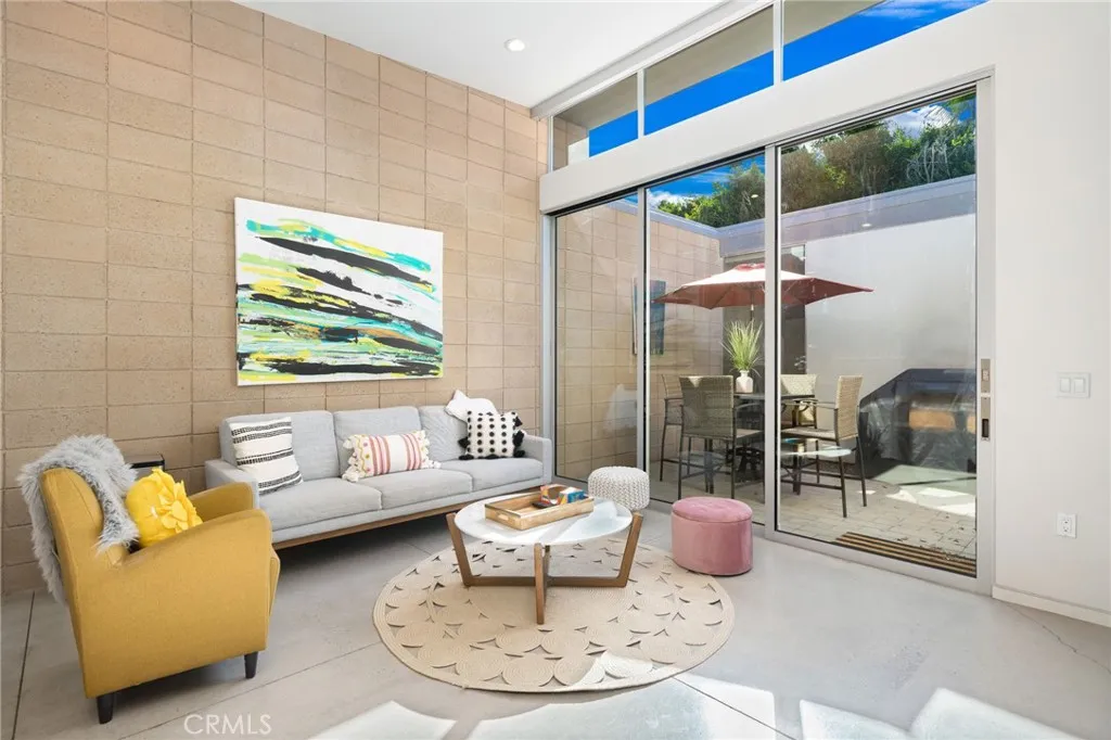 Stylish & Contemporary 2-bedroom, 2-bath mid-century condo located in the heart of South Palm Desert. The home comes fully furnished, complete with stylish wall decor throughout. This beautifully maintained home is sophisticated, modern & has desert flare. It features stainless steel appliances, it has been designed with concrete floors and walls of glass, offering an open layout, two private patios, in-unit washer and dryer, and dual AC/heat systems for optimal comfort throughout. Includes one covered parking space plus ample guest parking. Low HOA of $250 per month, and does allow short term rentals less than 30 days. Once you park your car at home, you won’t need to get back into it, this home is walking distance to El Paseo shopping district, restaurants and coffee shops, close to golf courses & Living Desert Zoo! Call to schedule your viewing today!
