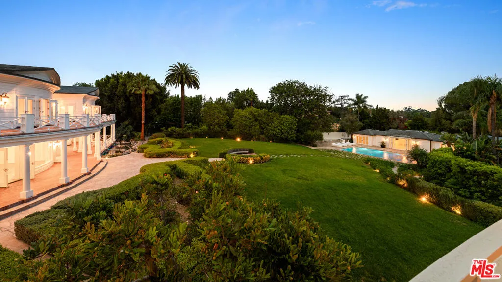 As storied and sumptuous as its address, 10250 W Sunset Boulevard is an unparalleled blend of old Hollywood pedigree and refined Beverly Hills glamour. Designed in the 1930s by renowned architect Paul Williams and the largest project of his career the home’s signature Georgian Colonial architecture remains its foundation, complemented by contemporary interiors that enhance rather than overshadow the original design. Numerologically, the estate’s address10250resolves to eight. The same number of visionaries, builders, and legacy-makers. Originally built in 1938 for radio star Charles Correll, the estate was later expanded by novelist and producer Sidney Sheldon before passing to fashion designer Max Azria, founder of BCBG Max Azria Group. In more than 80 years, it has had just three owners. Williams’ architectural vision is evident throughout, from stately columns to intricate moldings and beautifully balanced proportions that have stood the test of time. The interiors have been thoughtfully reimagined with a light contemporary touch, introducing modern French influences while preserving the home’s original character and sense of grandeur.Set across nearly three acres in prestigious Holmby Hills, the estate spans approximately 30,000 square feet, with 14 bedrooms and 25 bathrooms. Inside, the scale reveals itself immediately. A dramatic entry foyer unfolds, setting the tone for nearly 60 rooms that follow, each finished with refined detailing and custom craftsmanship. Rich parquet wood floors add depth and warmth throughout, contrasting elegantly with crisp white paneling and expansive French doors that open to the surrounding terraces and gardens. Upstairs, generously proportioned bedrooms feature ensuite baths and access to an upper-level balcony overlooking the manicured grounds. The primary suite serves as a private retreat, featuring a marble fireplace, a spacious sitting area, and oversized walk-in closets.Just beyond the main residence, a separate 6,000-square-foot structure includes a private theater and a grand office crowned by a gold-leaf ceiling. Across the grounds, five distinct gardens and cascading waterfalls frame a glass-enclosed tennis court with stadium seating, a Moroccan-inspired bathhouse with authentic hammam, and a striking blue-tiled pool. A Japanese garden and teahouse, formal French courtyard, and a working greenhouse complete the estate. Designed for effortless entertaining, the home accommodates everything from intimate gatherings to large-scale events, including film screenings, fashion presentations, and charity galas. Its flowing layout easily supports a seamless balance of family living, guest hosting, and staff operations. Set behind a long, gated drive, the estate offers exceptional privacy and security an extraordinary opportunity to own a true piece of Los Angeles history, reimagined for modern living.