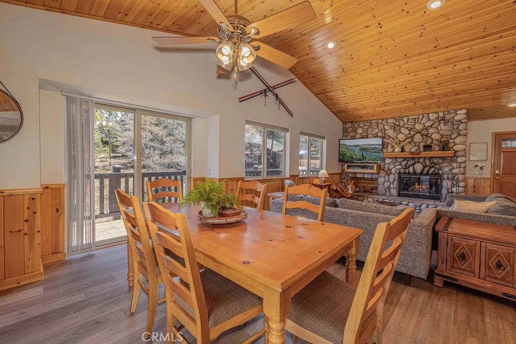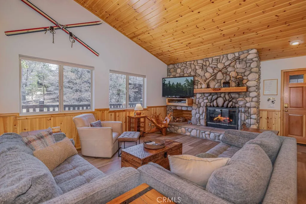 Welcome to your dream retreat in Moonridge! This turnkey home offers the perfect blend of rustic charm and with a modern stylistic touch. Nestled in a peaceful alpine setting, this ideal escape features 3 bedrooms, including a spacious master suite, and 2 baths. As you step inside, you’re greeted by vaulted cedar-lined ceilings and a cozy river rock fireplace, creating a warm and inviting atmosphere. Tasteful updated flooring throughout and don’t miss the expansive decking with a new spa that allows you to soak in the mountain air among the pines. With a spacious 2-car garage, complete with an added game room, you’ll have plenty of space for storage and entertainment. Whether you’re looking for a serene getaway or an investment opportunity as a successful Airbnb, this property offers it all. Don’t miss out on the chance to own your own piece of paradise!