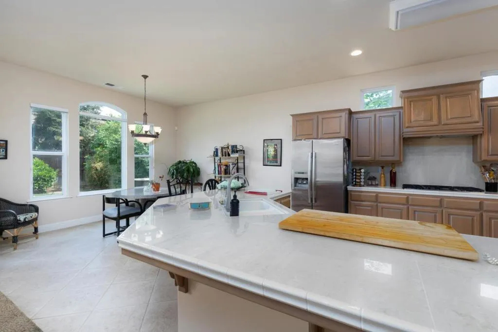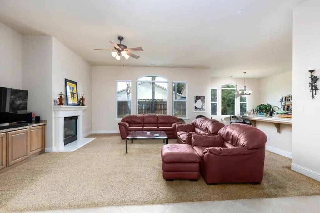 Nestled within a beautifully planned community filled w/ scenic trails & neighborhood parks, this Granville Mediterranean Style single story home offers comfort & a layout for everyday living. Located on a quiet culdesac, the residence features 4BD/2BA arranged to provide both connection & privacy. Step inside to an inviting open concept kitchen w/ built in cabinetry, a spacious pantry which flows into the family room & cozy kitchenette area. A warm fireplace anchors the space, creating the perfect atmosphere for gatherings & relaxed evenings. Just off the entry, the formal dining room adds an elegant touch for hosting & special occasions. The primary suite is situated on its own side of the home, which includes a second fireplace an intimate retreat designed for comfort. Three additional bedrooms are grouped together on the opposite side of the house. The backyard is a true blank canvas for your imagination. Whether you envision a sparkling custom pool, a lush garden oasis or simply enjoying the existing in ground spa, the space can become whatever your heart desires. Located near top rated Clovis Unified schools, parks, trails, & a wide variety of dining options, this home offers convenience & lifestyle in every direction. Don’t miss the opportunity to make this home yours!