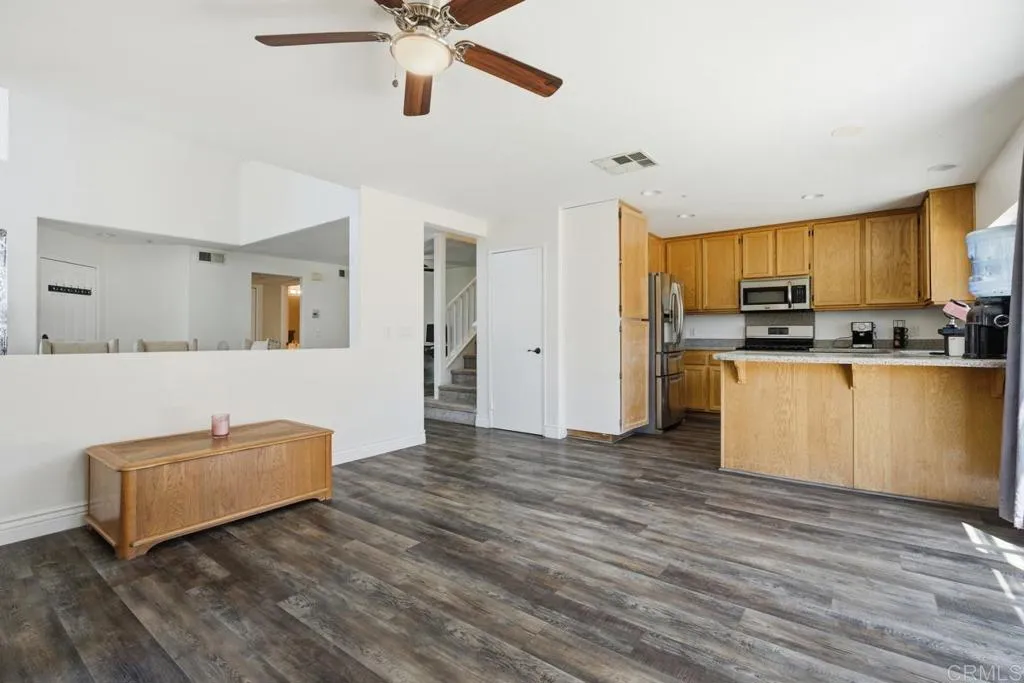 3 Bdrm/2.5 Bath Home in Friendly Community Neighborhood Near Town. Nicely Landscaped and Near Inviting Community Pool & Guest Parking! Private Fenced Backyard Area Ready for your BBQ. *** Large Private Primary Bedroom and Bath Upstairs at End of Open Railed Hallway with Overlook to Living Room. Secondary Bedrooms and Bath at Opposite End Near Hall Linens.**** Downstairs Open and Airy vaulted Living Room with Dining Alcove. *** Family Room With Fireplace Open to Kitchen. Wood cabinetry & Granite ‘look’ Counters. UPDATED with LVR Flooring & New Windows Throughout!*** Ceiling Fans & Freshly Painted Interiors. Sliders to back patio and fenced yard.