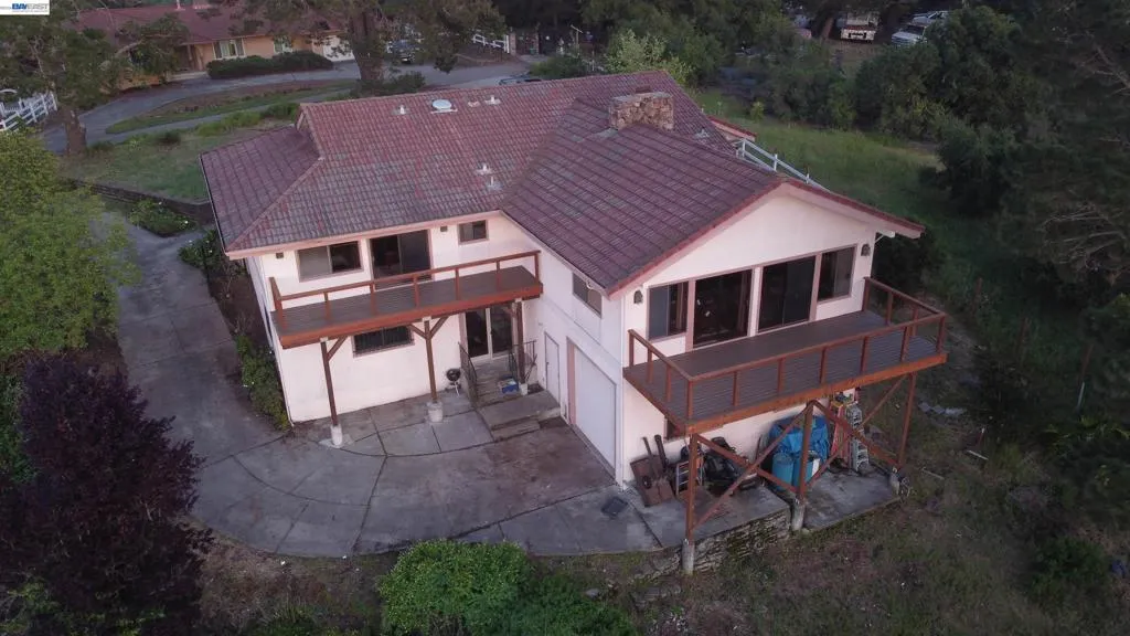 ***OPEN House Saturday and Sunday 4/25 and 4/26 1-4PM*** Tucked away in the Castro Valley hills on a sprawling 0.89-acre lot comprised of two separate adjacent parcels, this unique property offers the perfect blend of privacy, space, and natural beauty. Surrounded by abundant wildlife and serene hillside views, the setting feels like your own private retreat—yet remains conveniently close to town. The home features two spacious primary suites, ideal for multi-generational living or hosting guests in comfort. Inside, you’ll find soaring vaulted open-beam ceilings that create an airy, inviting atmosphere, along with central air conditioning for year-round comfort. The heating has two zones and the kitchen has been pre-plumbed with propane if a gas cooktop is preferred. Step outside to enjoy three recently rebuilt decks (one has already been pre-plumbed with propane for your BBQ), providing multiple spaces to relax, entertain, and take in the peaceful surroundings. The home has an attached 2-car garage and it also has a separate driveway leading an attached workshop (approx 9′ 8″ x 22′ 8″) and a RV/Boat garage (approx. 11’8″ x 22′ 8″) that are perfect for hobbies, projects, or additional storage. The property is accessed via a private drive with only a handful of neighboring homes, this is a rare opportunity to own a tranquil hillside escape with room to breathe, explore, and truly unwind. The downstairs area has a large office, family room and a full bathroom with a separate entrance and a spiral staircase that connects it to the upstairs living area. There are plenty of separate areas in this home allowing its owner to configure customized usage to meet their specific needs. All section 1 work from the East Valley Termite report dated 9/11/25 has been completed.