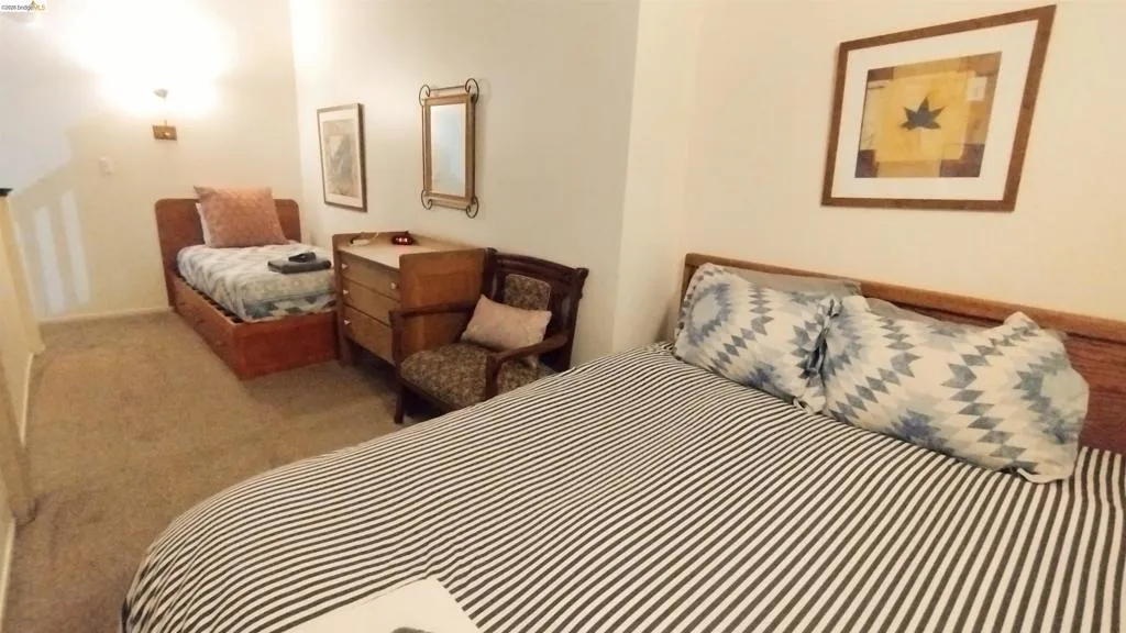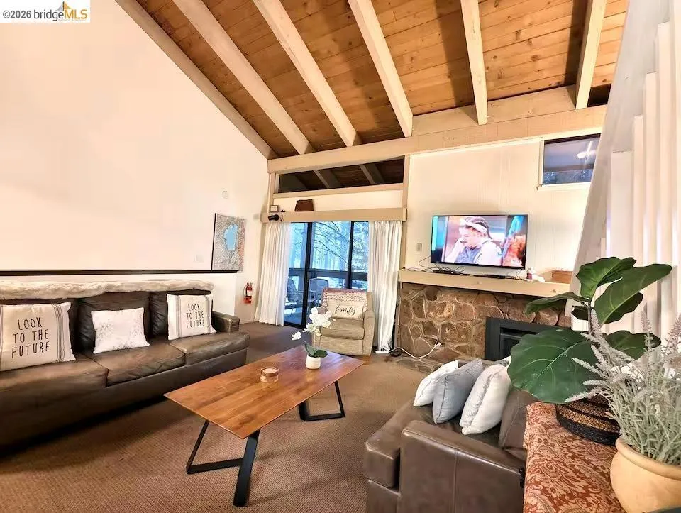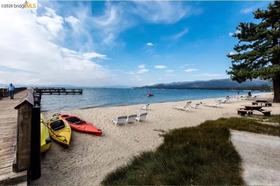 Located in the premier lakefront community of Lakeland Village, this beautifully updated 1-bedroom + loft residence offers a desirable townhome-style layout just steps from Lake Tahoe. The inviting interior features vaulted ceilings, exposed beams, abundant natural light, and a cozy stone fireplace, creating a warm mountain retreat. The loft provides additional flexible sleeping space, allowing the home to live like a 2-bedroom. Enjoy resort-style amenities including a private sandy beach, pier, pool, spa, and beautifully maintained grounds. Convenient on-site open parking available for owners and guests. Situated in the highly sought-after Tourist Core where short-term vacation rentals are permitted (subject to local regulations and permitting), this property offers excellent potential as a second home or investment opportunity with strong rental appeal.