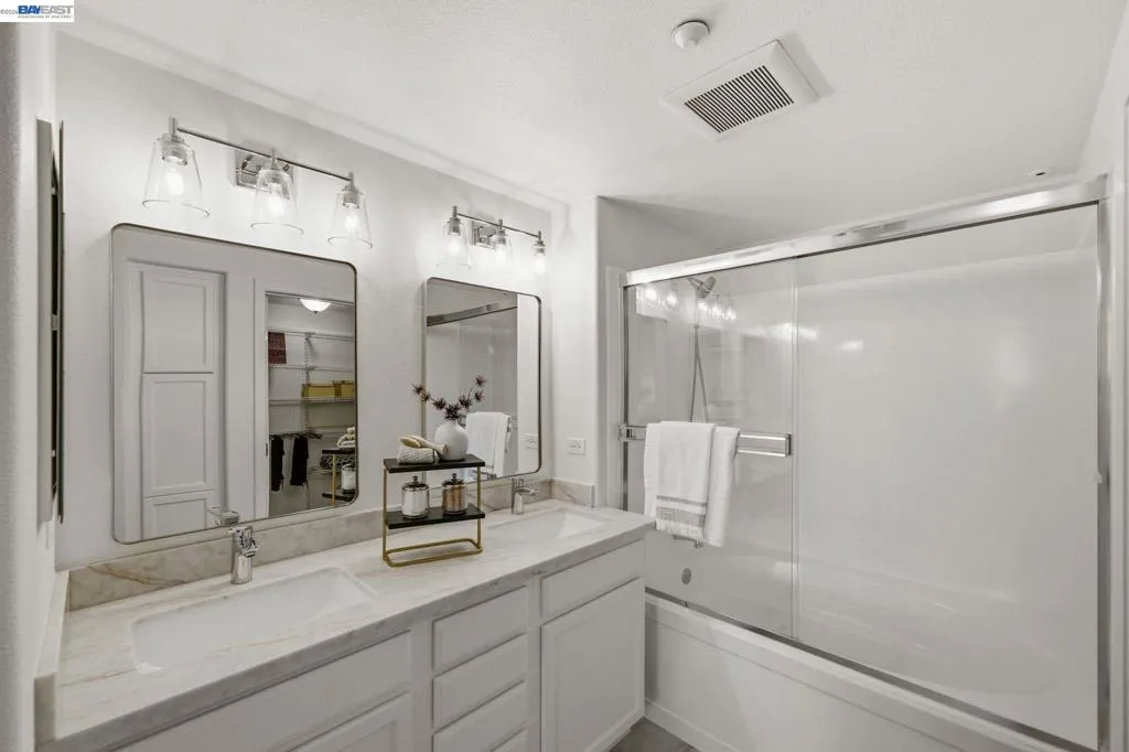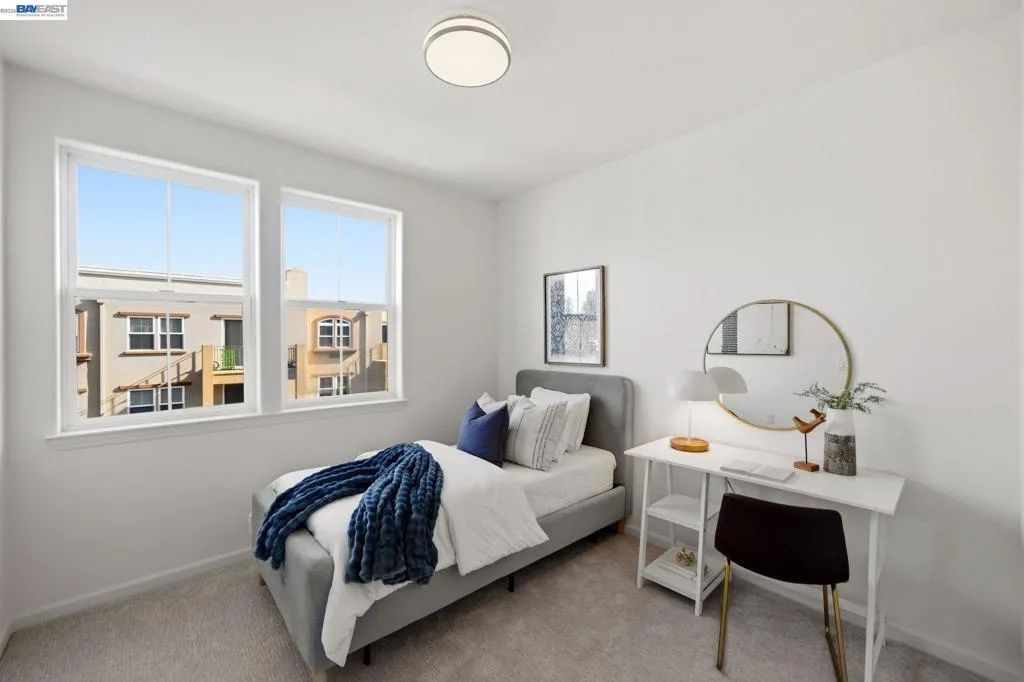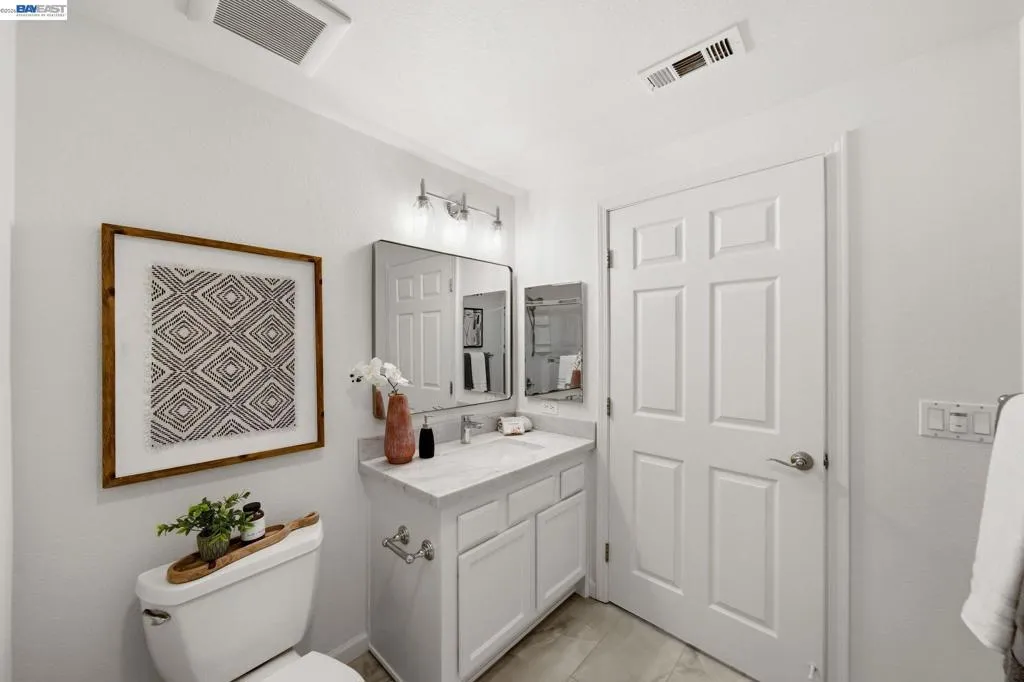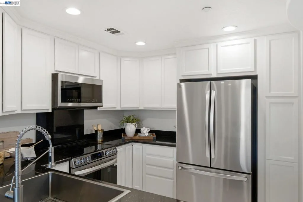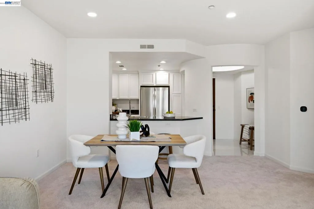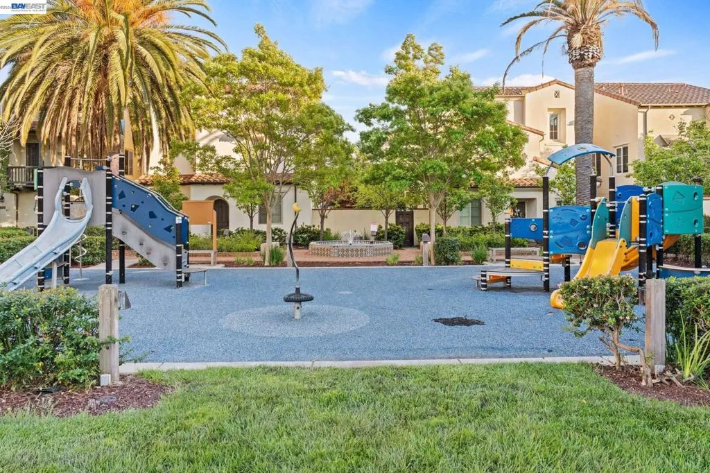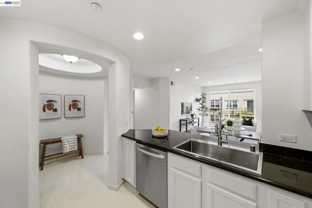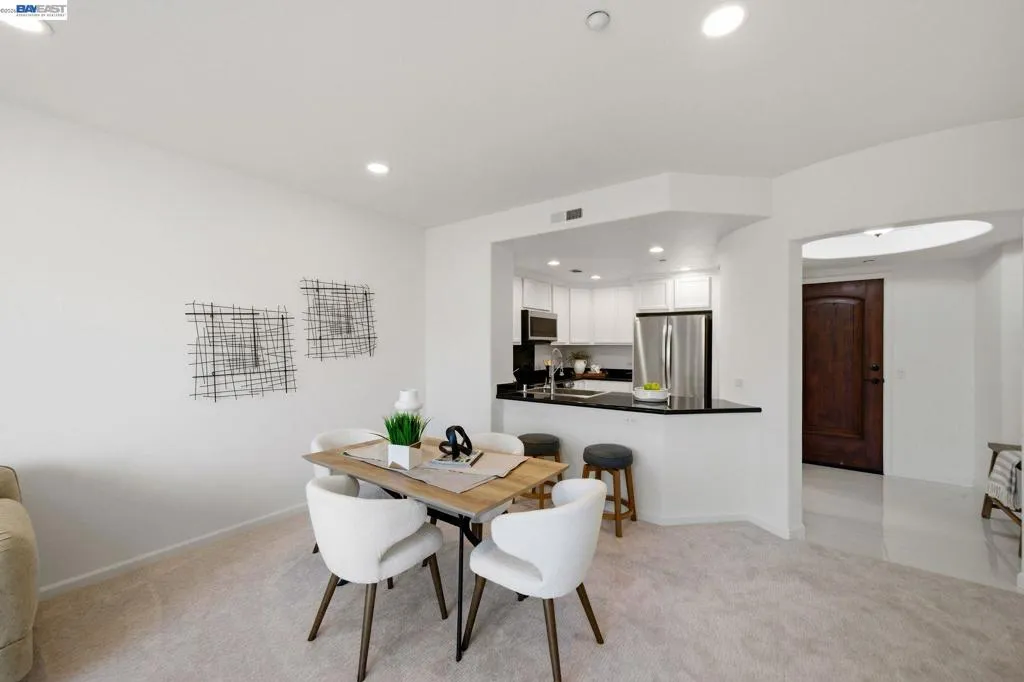 Set within Fremont’s sought-after, gated Montebello Warm Springs community and served by award-winning Warm Springs schools, this beautifully updated fifth-floor 2-bedroom, 2-bath condo offers 1,081 sq ft of light-filled, elevated living. A welcoming entry with porcelain tile leads to freshly painted interiors and a seamless, open flow. The upgraded kitchen pairs granite countertops with new stainless steel appliances and the ease of an in-unit washer and dryer. In the living and dining areas, new recessed lighting creates a warm, modern ambiance, while a new sliding glass door glides open to a private, elevated balcony retreat—perfect for morning coffee, evening breezes, and enjoying sweeping views of Mission Peak. New plush, padded carpeting adds comfort and polish, and central heat and A/C ensure year-round ease. The serene primary suite features a generous walk-in closet, soaking tub, and a new quartz dual-sink vanity accented by a new light fixture. The upgraded guest bath is equally refined with new quartz countertops and a new light fixture. Enjoy two assigned tandem parking spaces in a secured garage, deeded storage, and an HOA covering water, garbage, and sewer. Community amenities include a gym, clubhouse, and playground, with quick access to 680/880/237, Warm Springs BART, Tesla, and top shopping and dining.