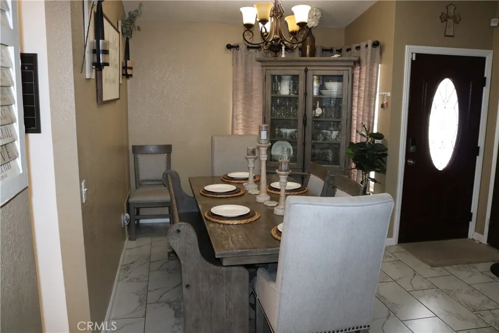 Inside, you’ll find a warm and inviting living room with a cozy fireplace, seamlessly flowing into the dining area, both enhanced by stylish wood-look laminate flooring. The updated kitchen boasts modern white cabinetry, granite countertops, a dishwasher, and abundant natural light, creating a bright and functional space.